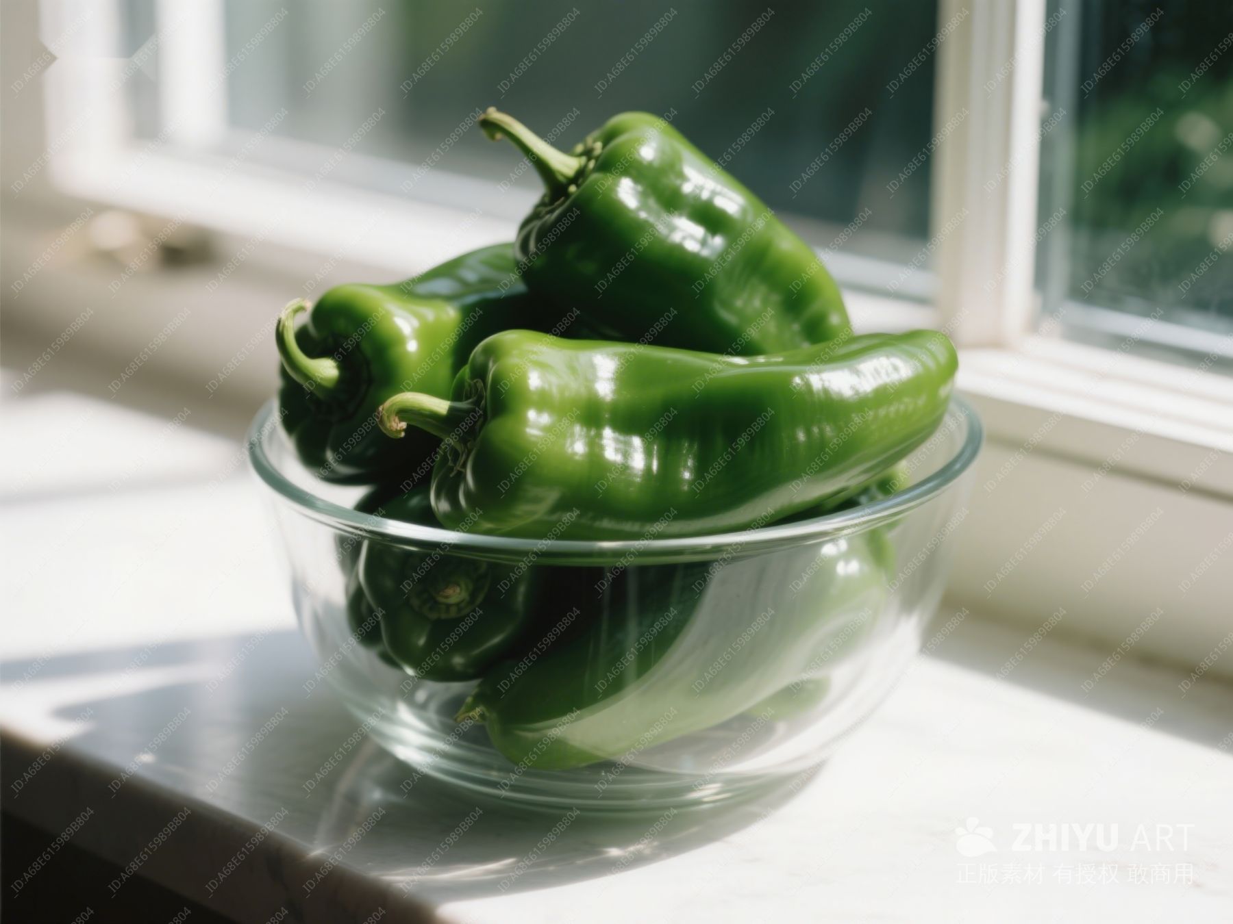 窗边玻璃碗中的青椒 131