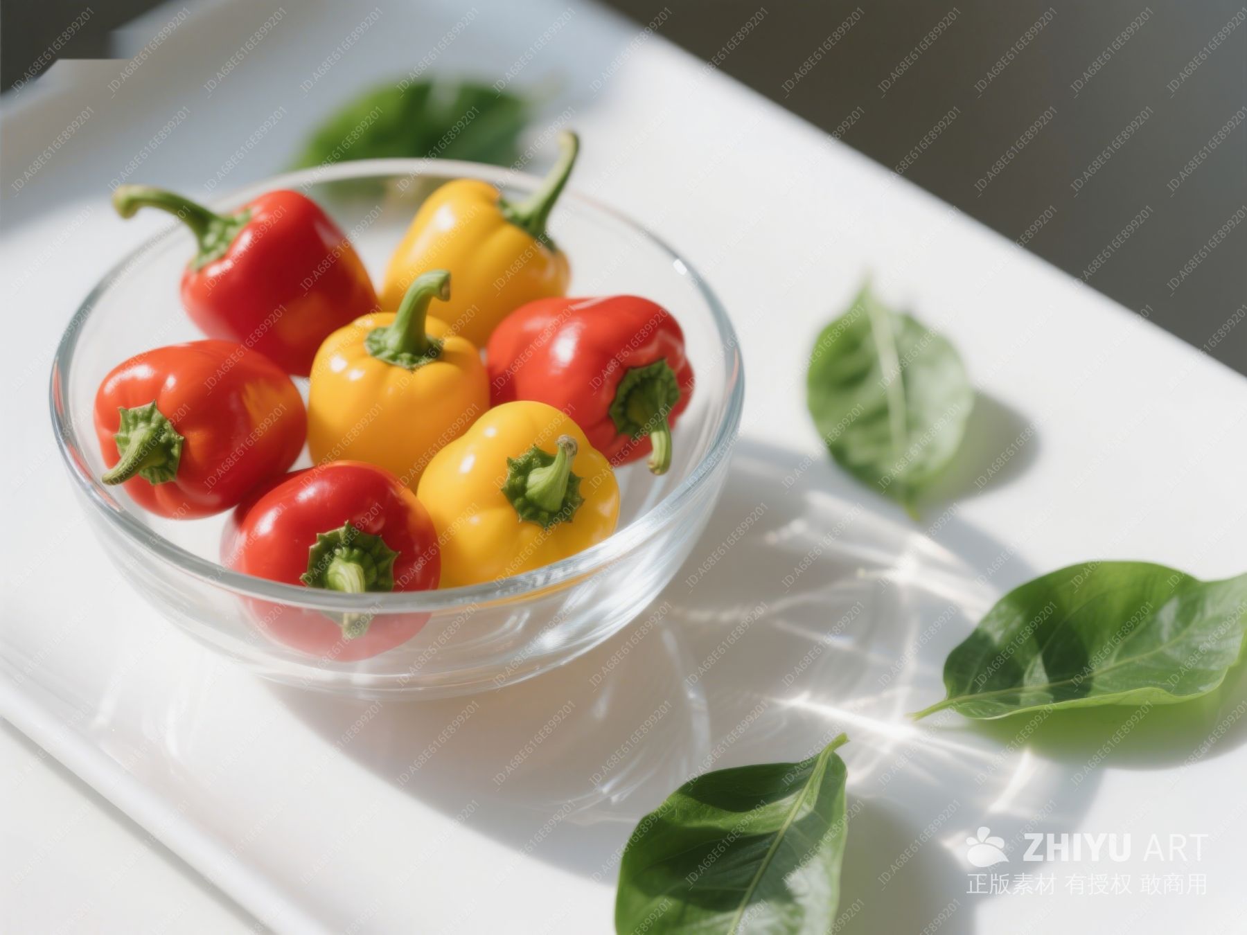 色彩鲜艳的甜椒置于玻璃碗中 353