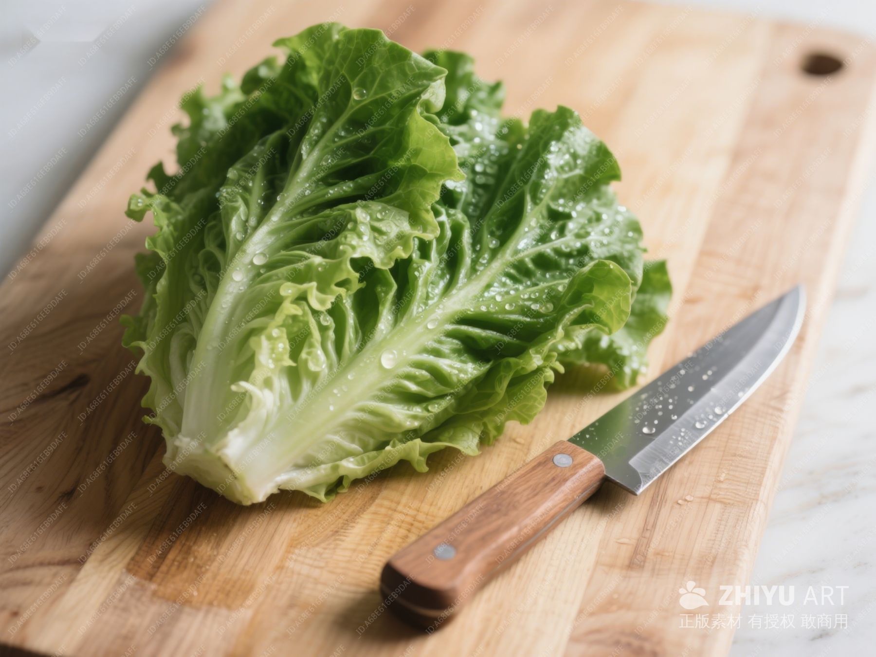 生菜置于木制砧板上,旁配刀具 361