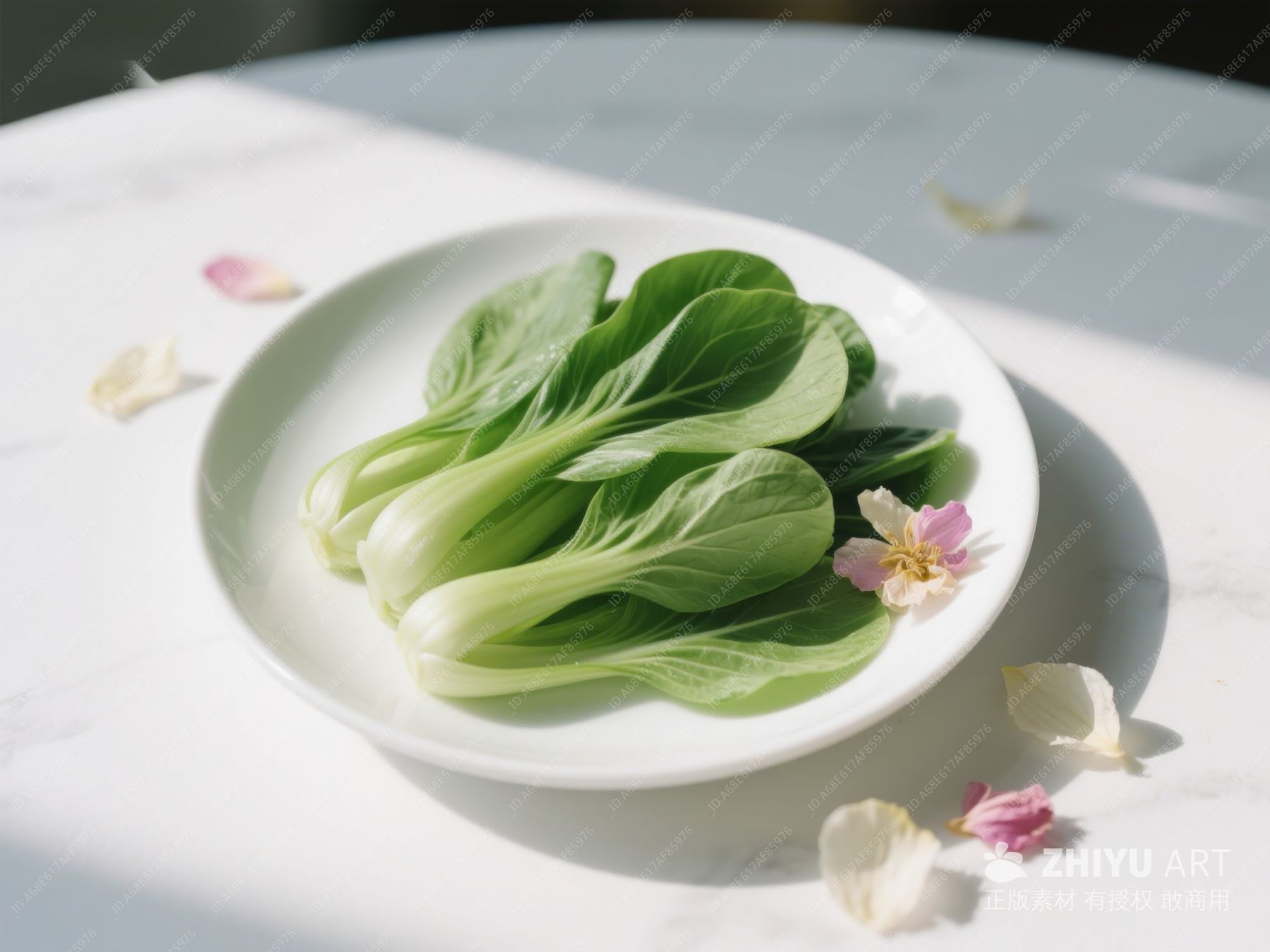 清新小白菜与花瓣的静谧组合 350
