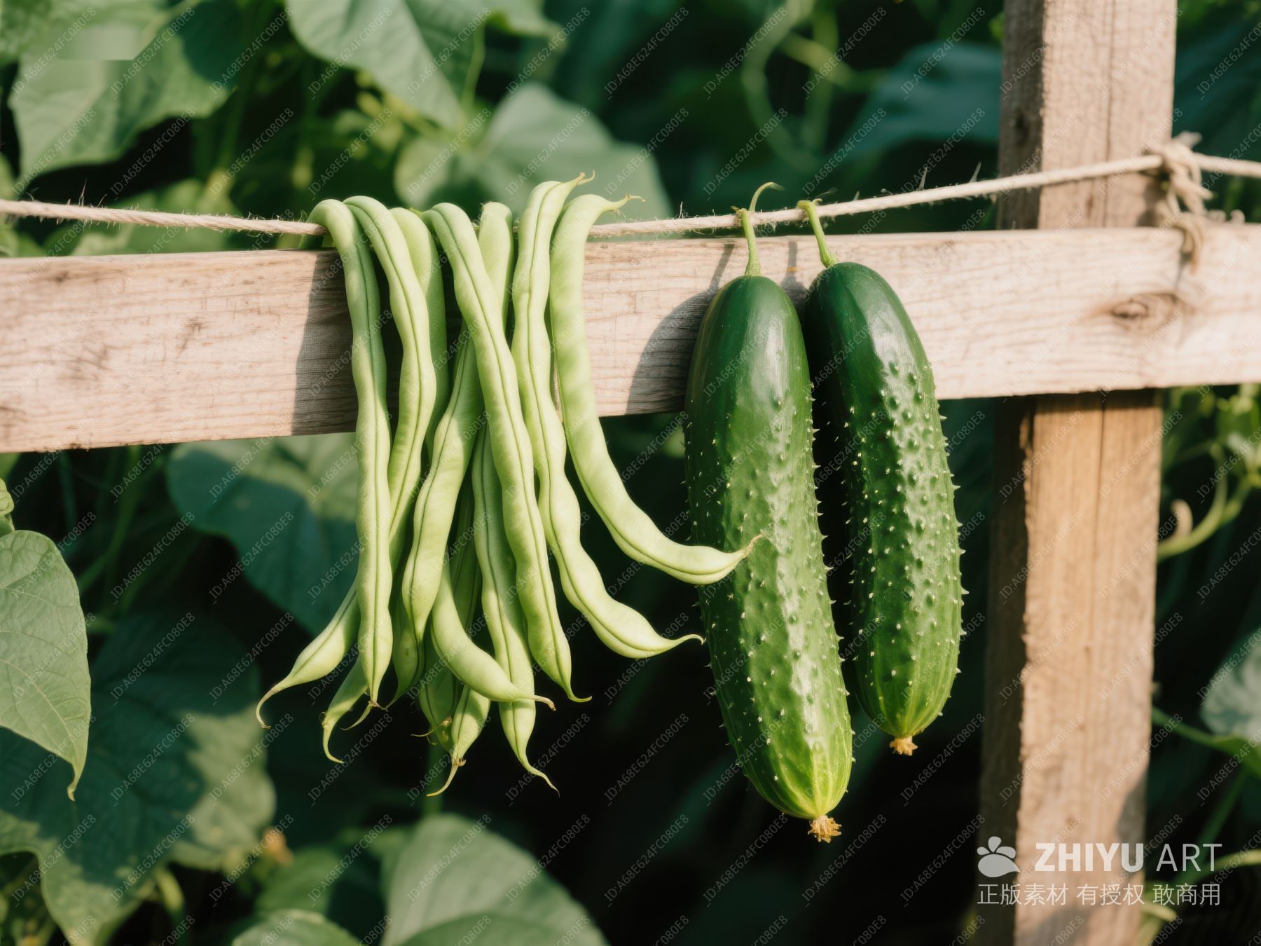 豆角与黄瓜悬挂于木架之上 48