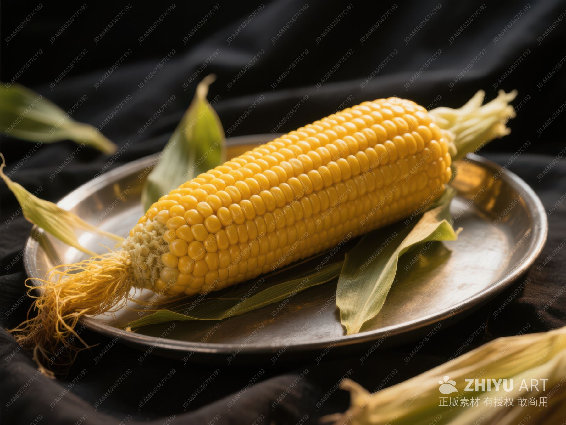 新鲜玉米堆放在黄色桌布上的盘子中 528