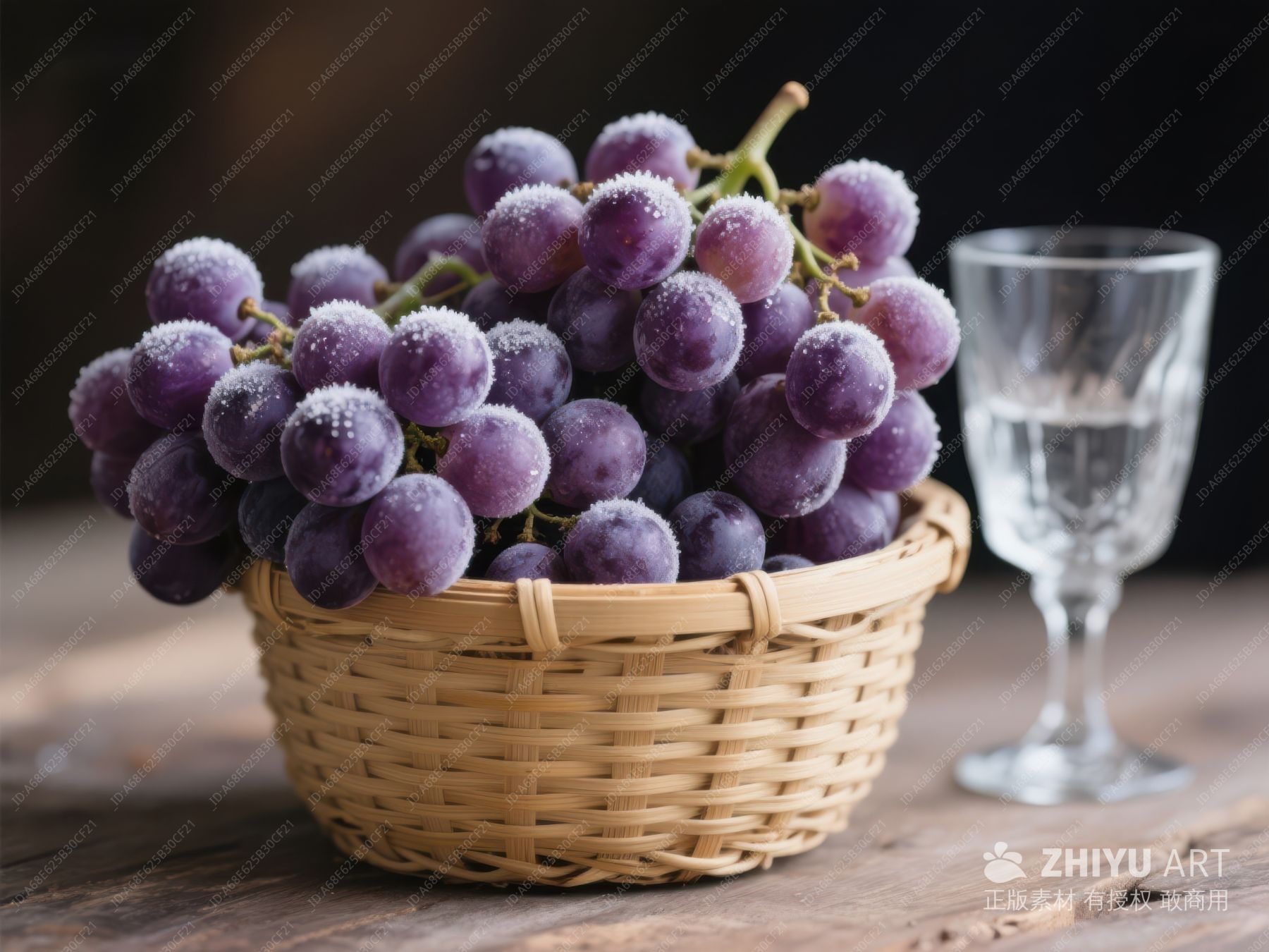 篮中紫葡萄与高脚杯静物 151