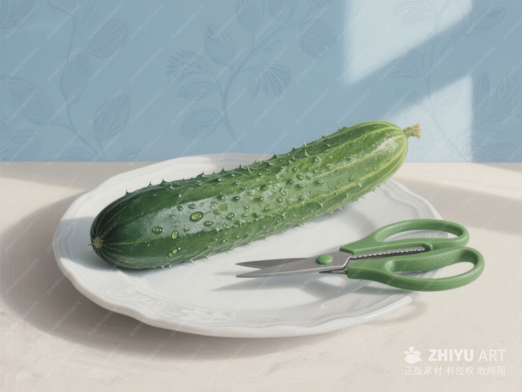 盘中黄瓜与剪刀 258
