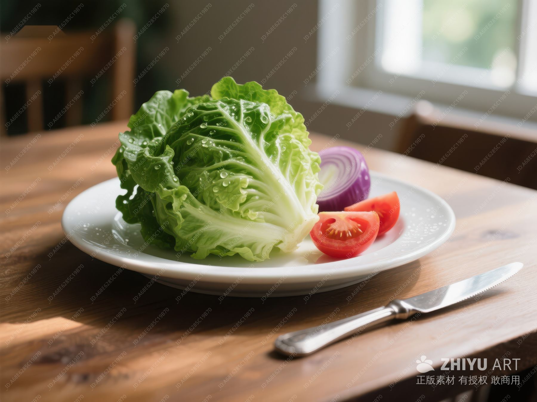 新鲜生菜与番茄洋葱摆盘 603