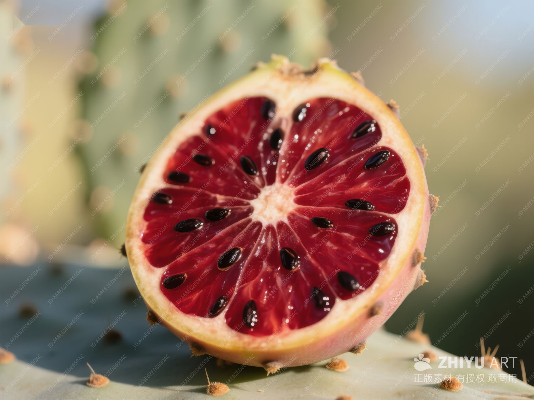 切开的仙人掌果实,汁液流出 278