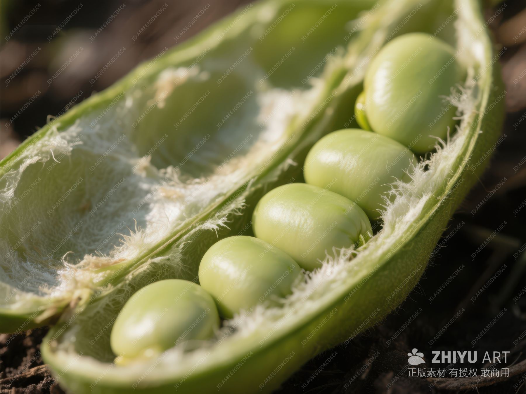 新鲜豌豆荚破裂,豌豆散落木质桌面 533