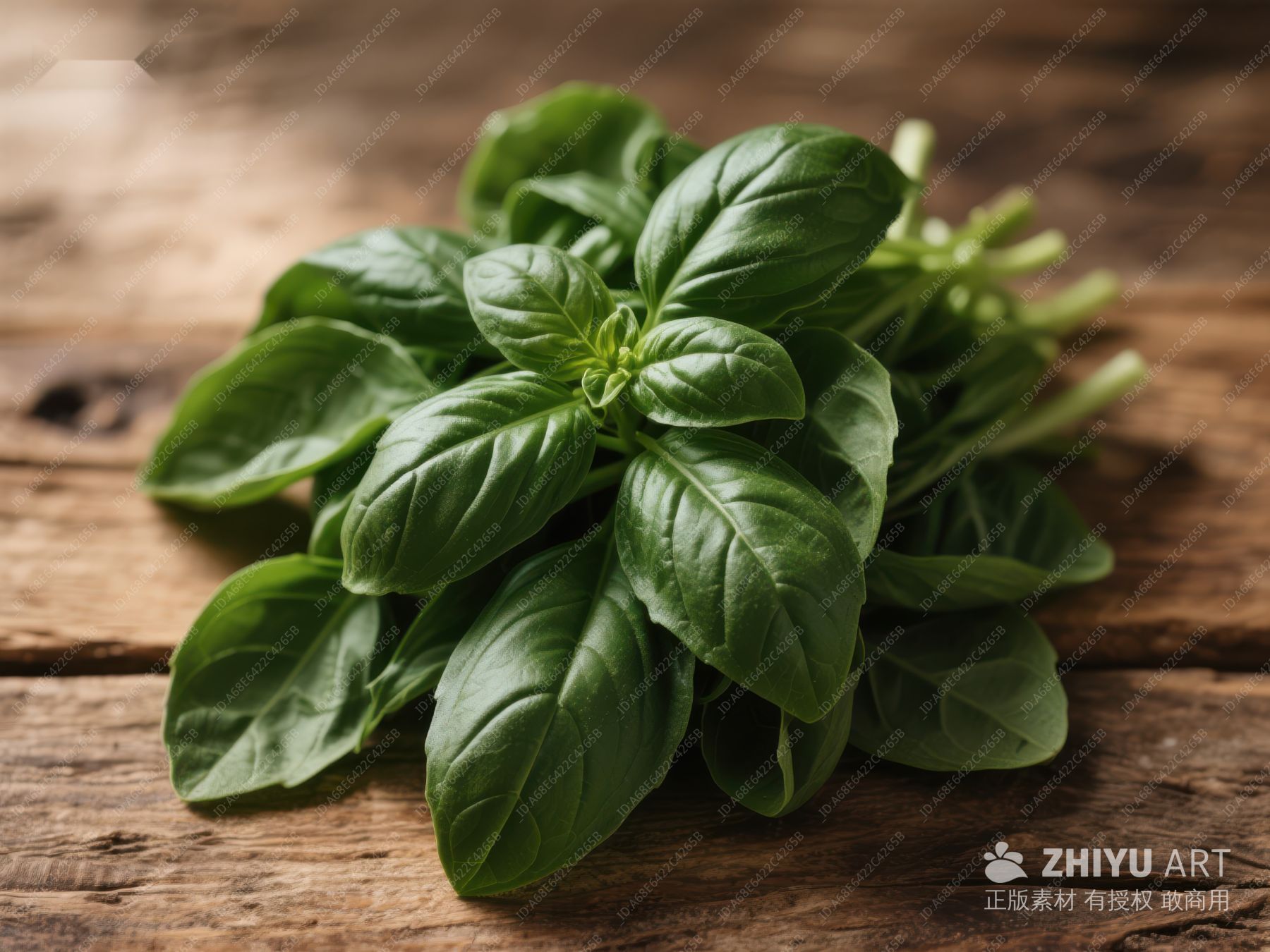 新鲜罗勒叶置于木质背景 465