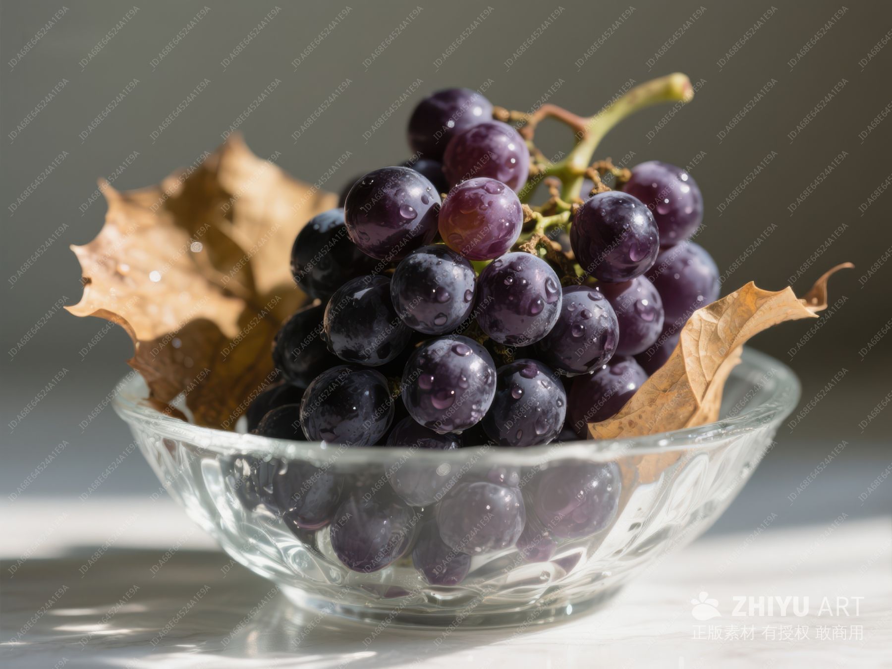 玻璃碗中的紫葡萄与秋叶 7