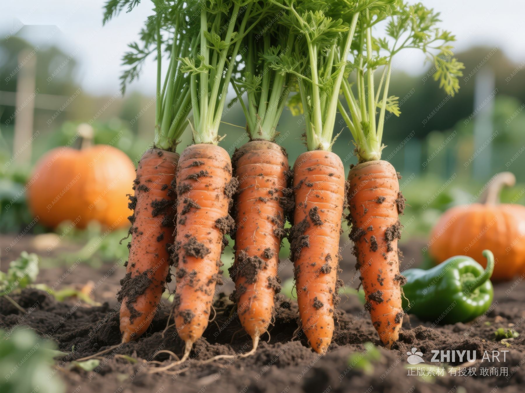 新鲜胡萝卜与南瓜绿椒田园风光 220
