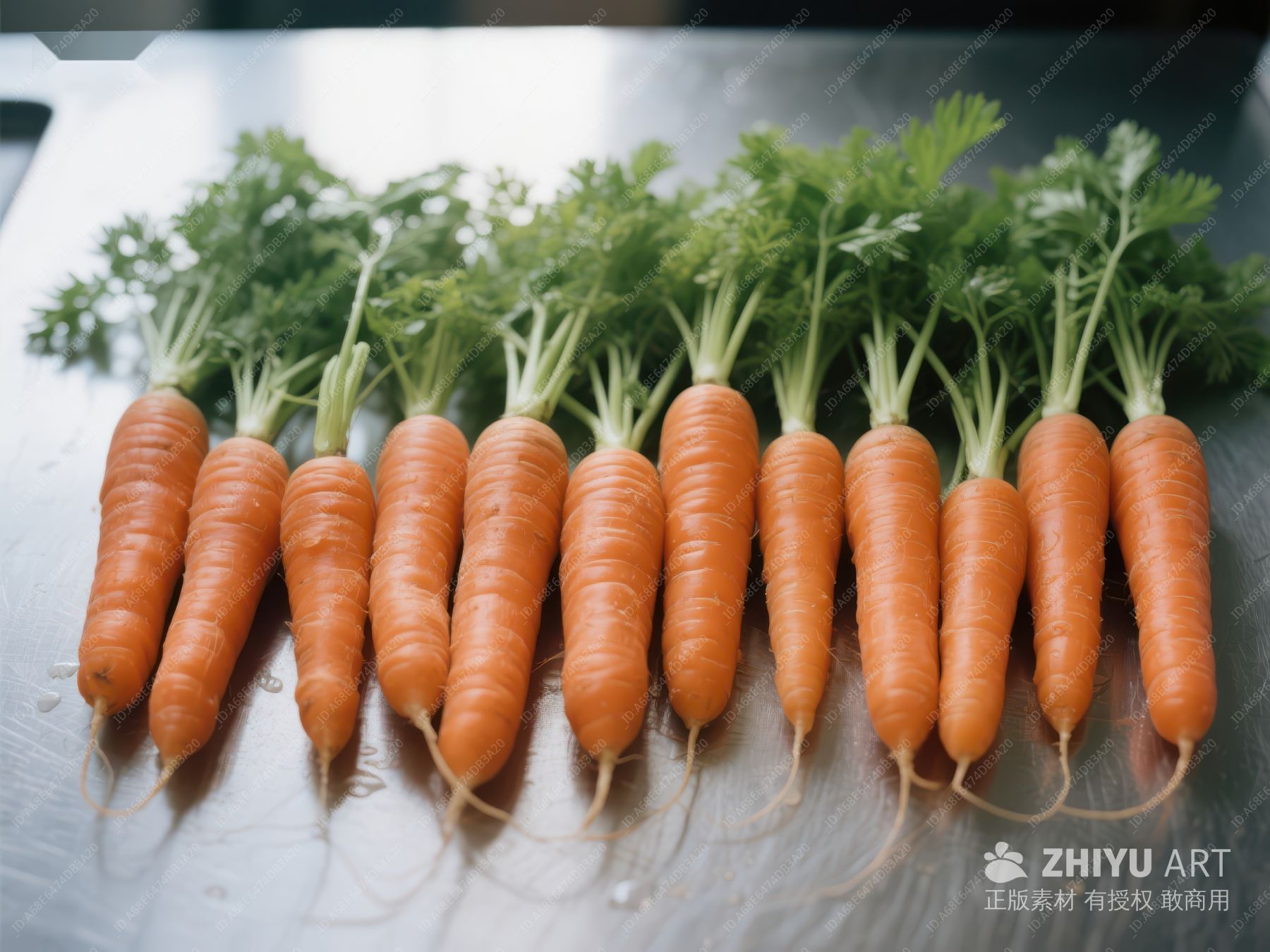 新鲜胡萝卜置于金属盘中 519