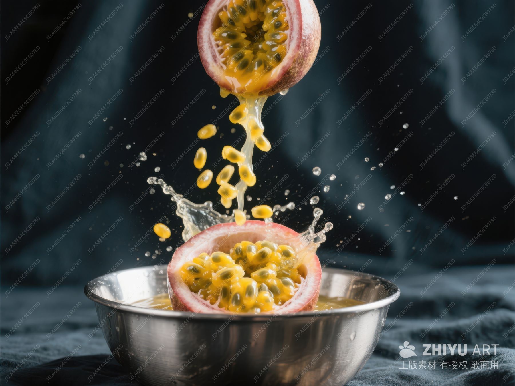 切开的百香果,汁液滴落 301