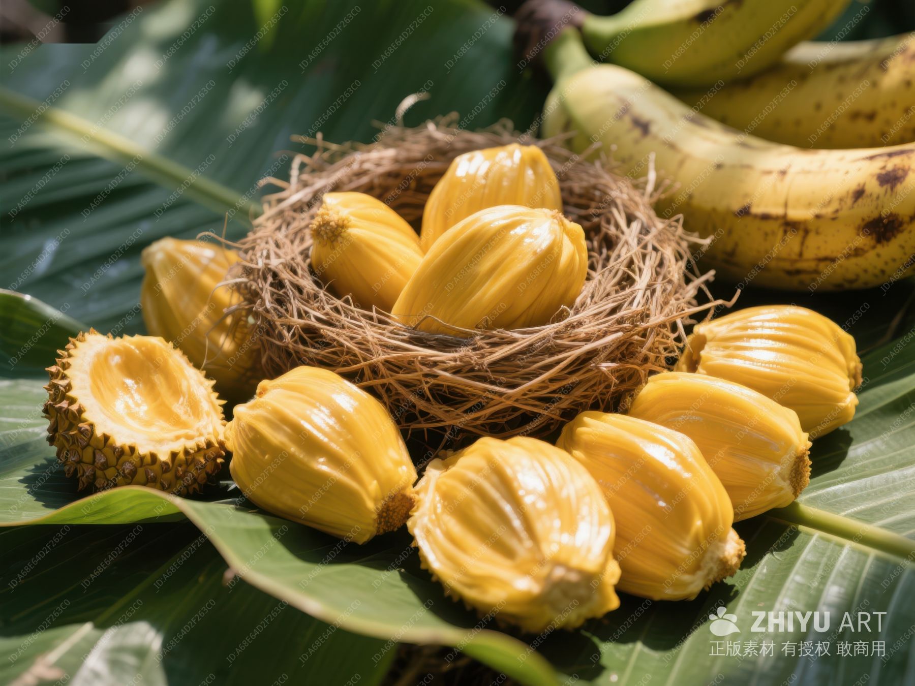 香蕉树下的菠萝蜜果瓣鸟巢 563