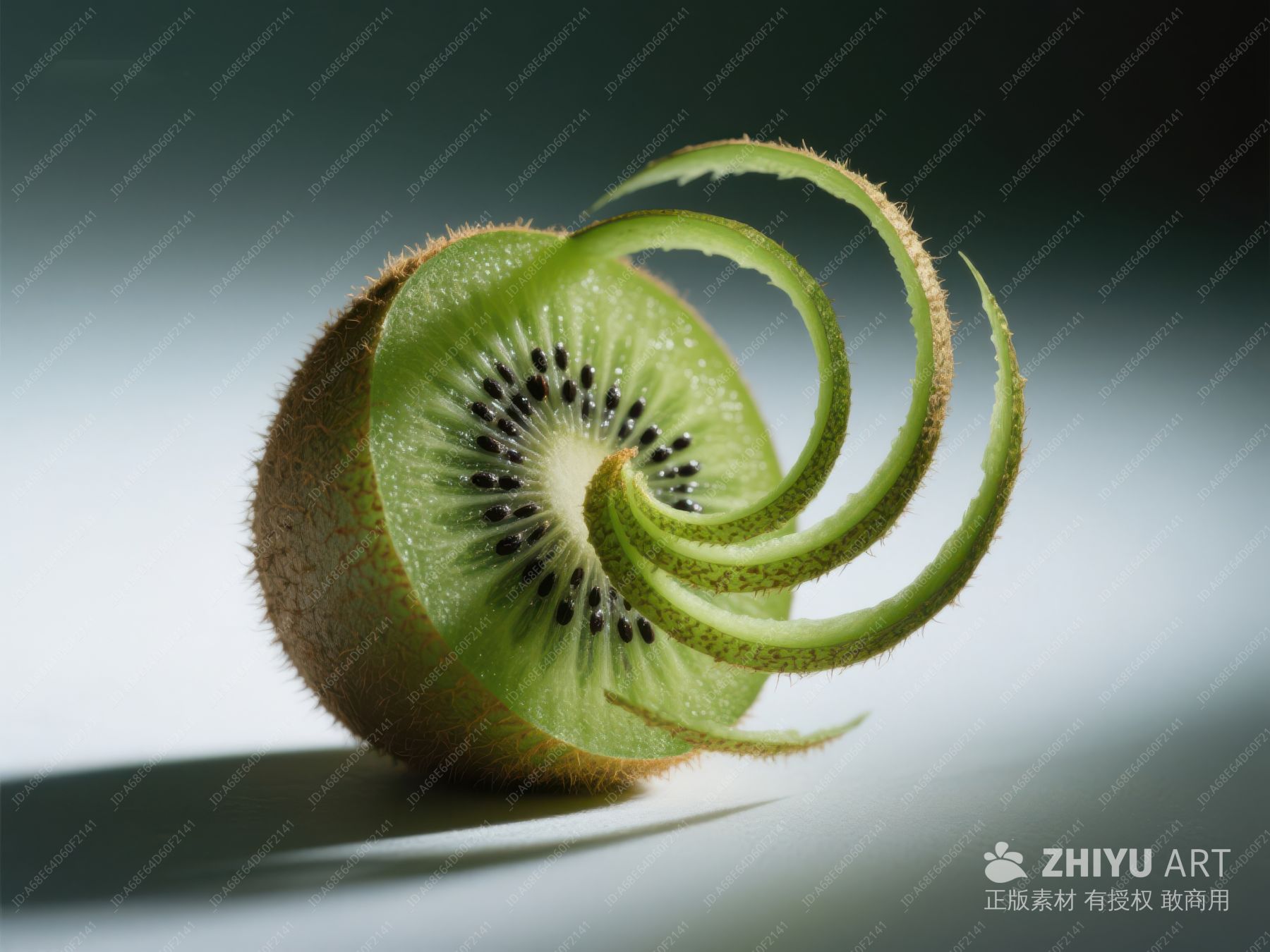 切开的猕猴桃,展示绿色果肉和黑色种子 367