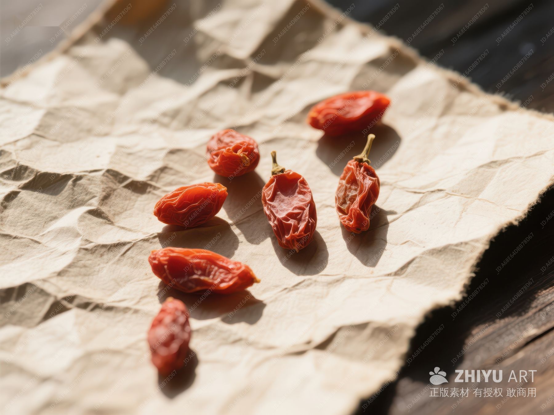 干制枸杞散落于纸张之上 155