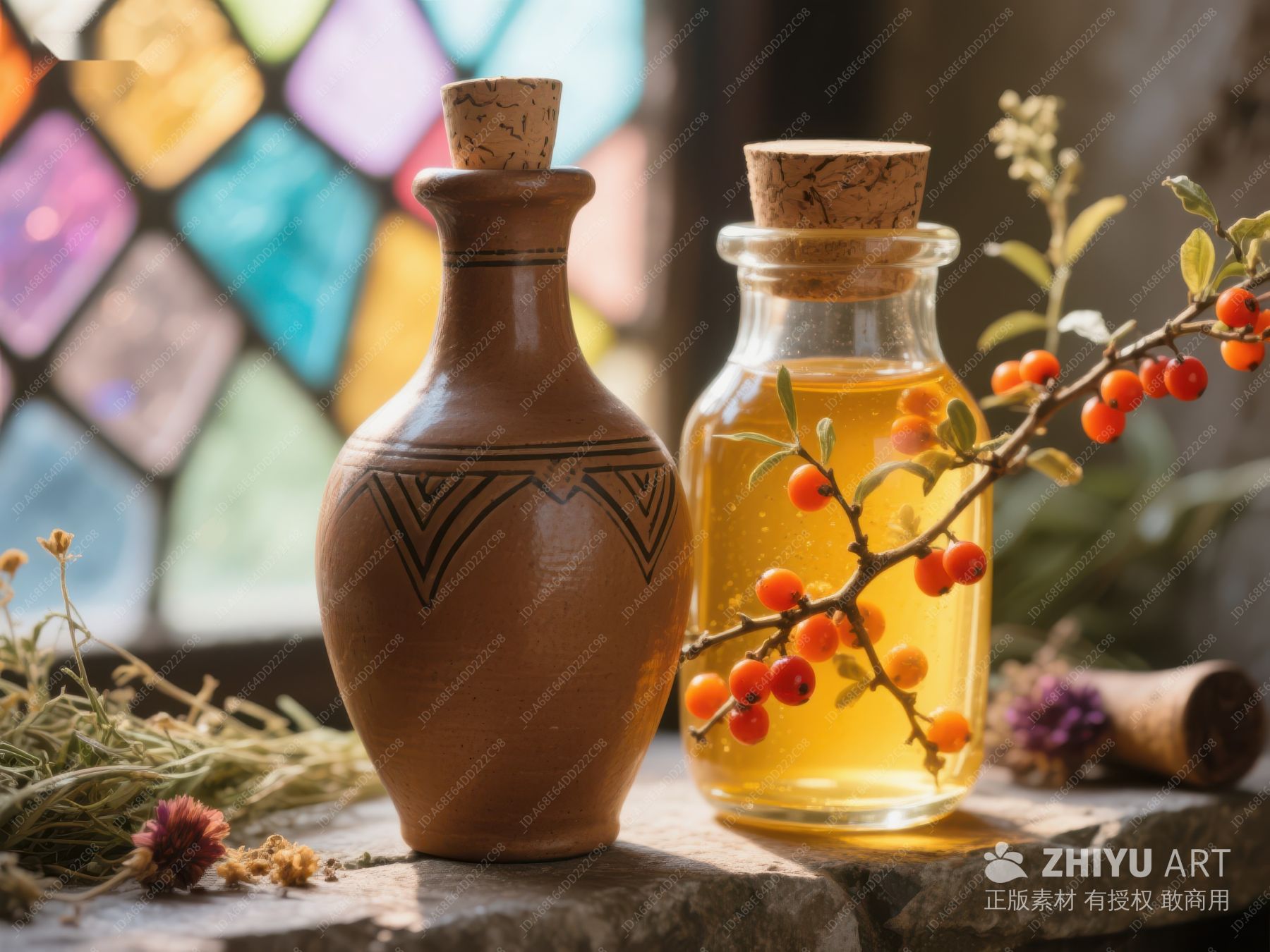 海 buckthorn 油与陶瓶的静物 166