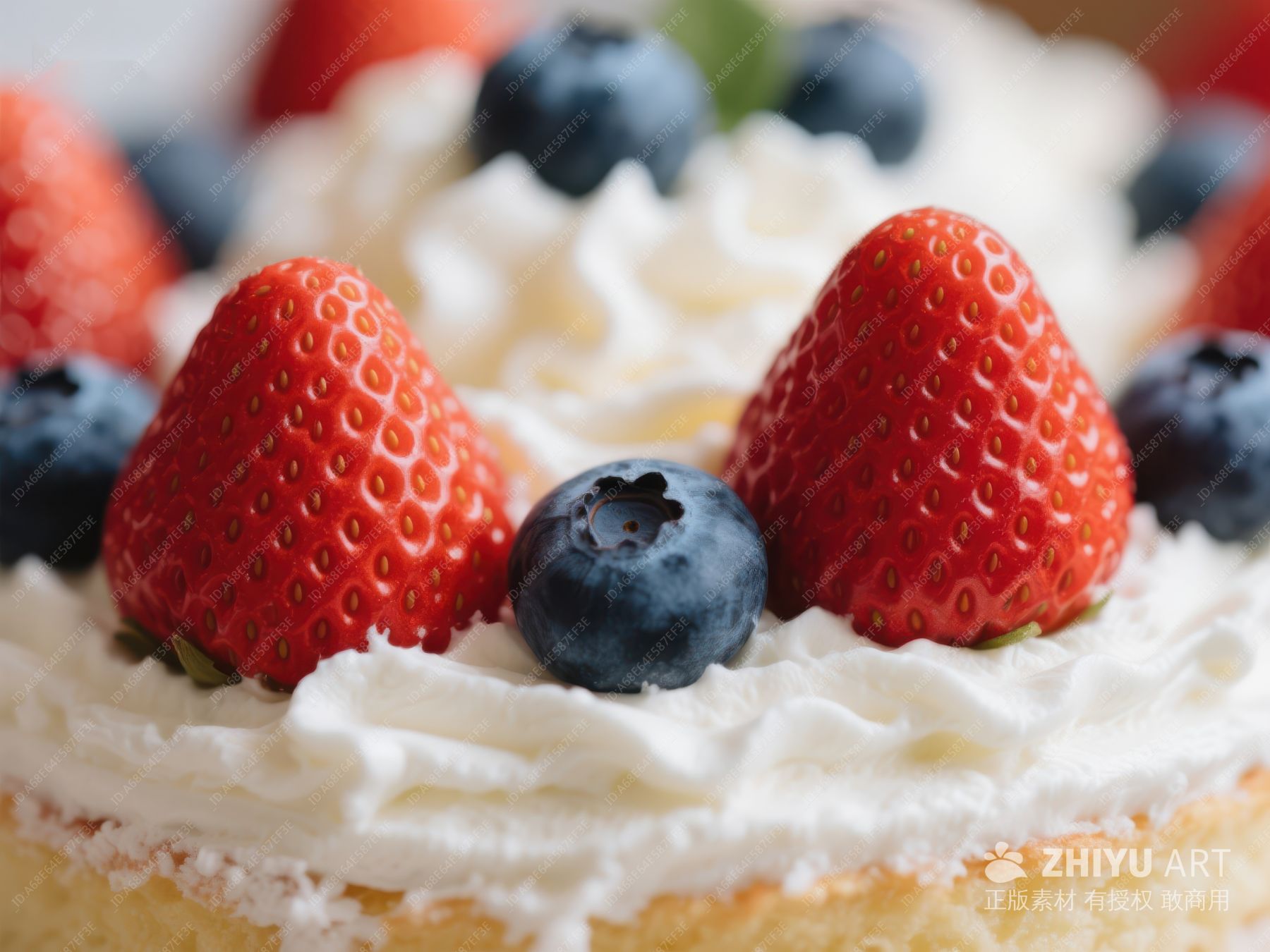奶油蛋糕上的新鲜草莓和蓝莓 255