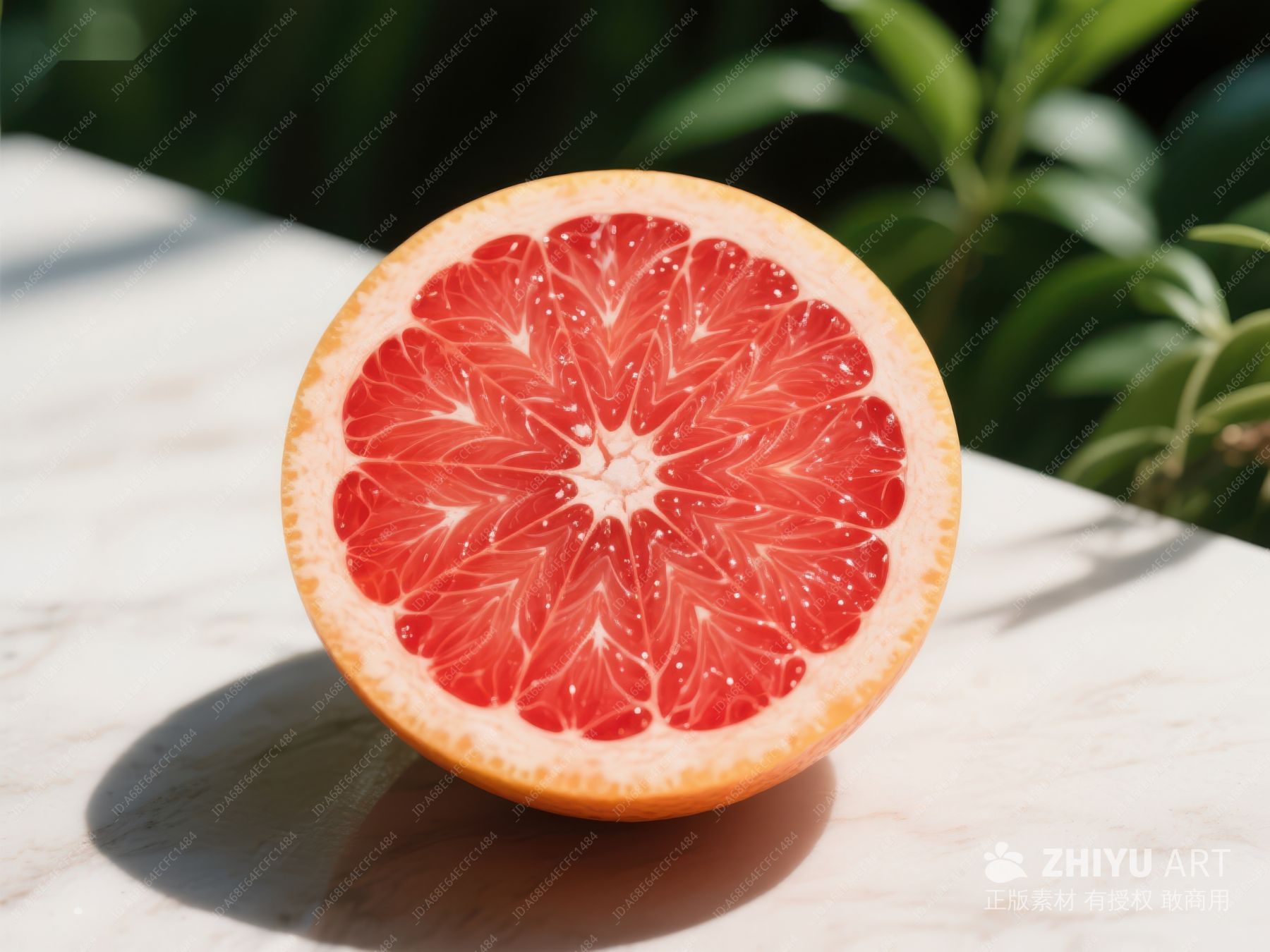 切开的葡萄柚,展示鲜艳红色果肉 373