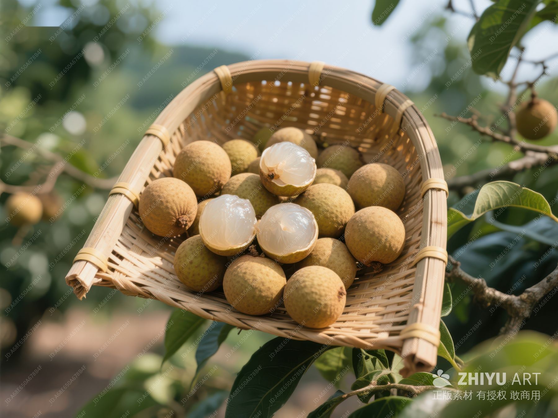 新鲜龙眼果篮,果园背景 634