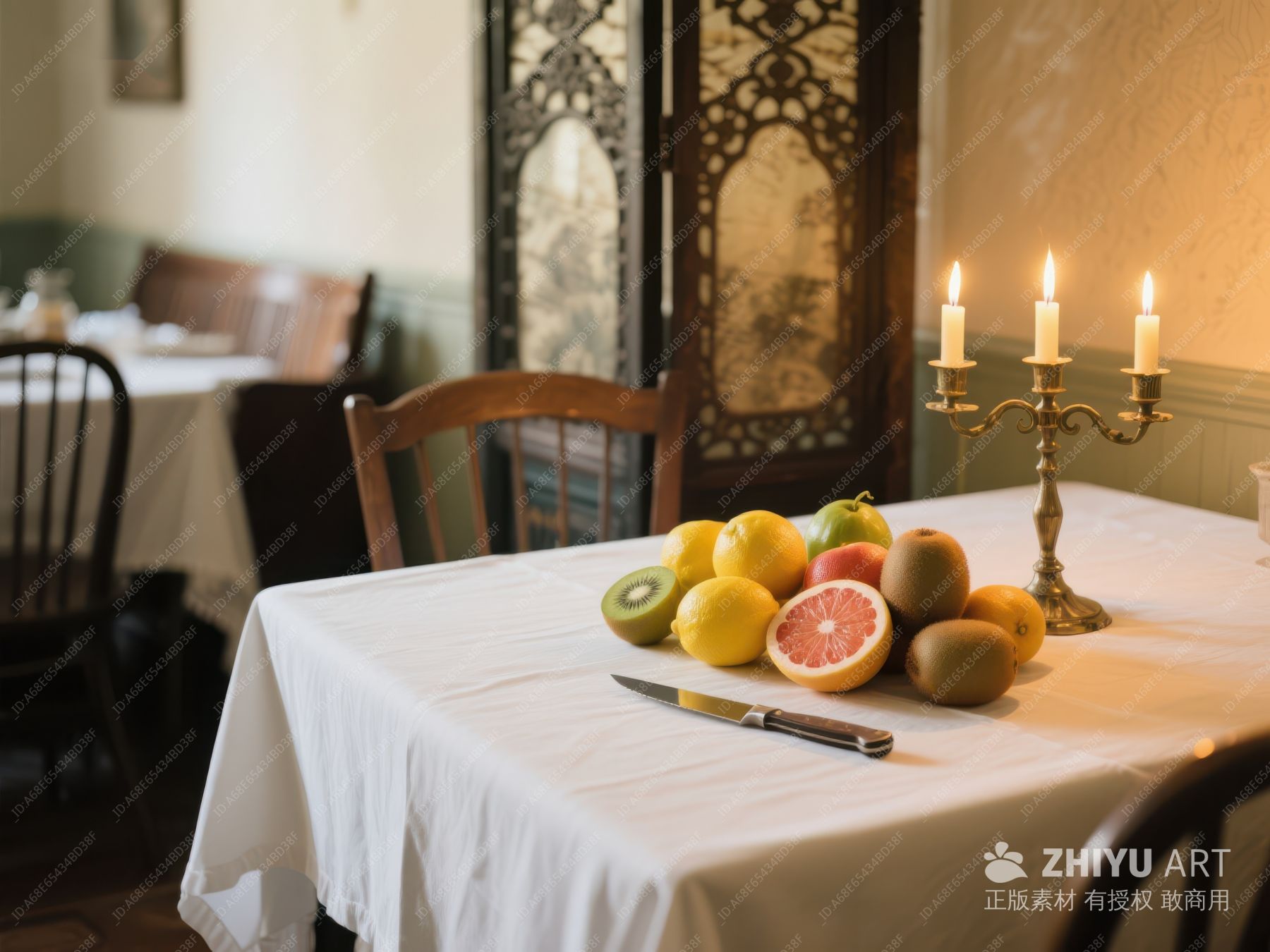 餐桌上的水果盛宴与复古烛台 52