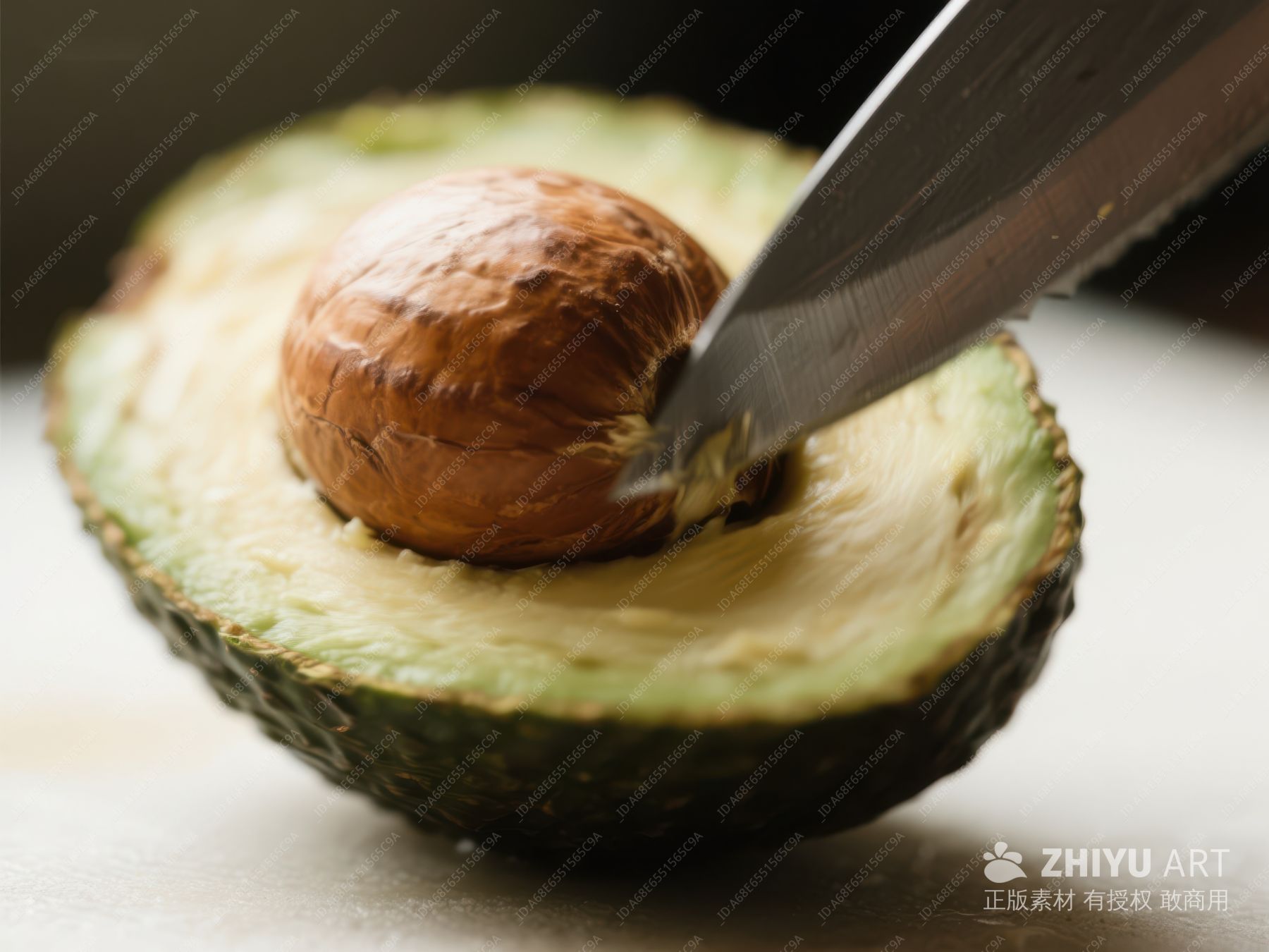 切开的牛油果展示果肉与果核 370