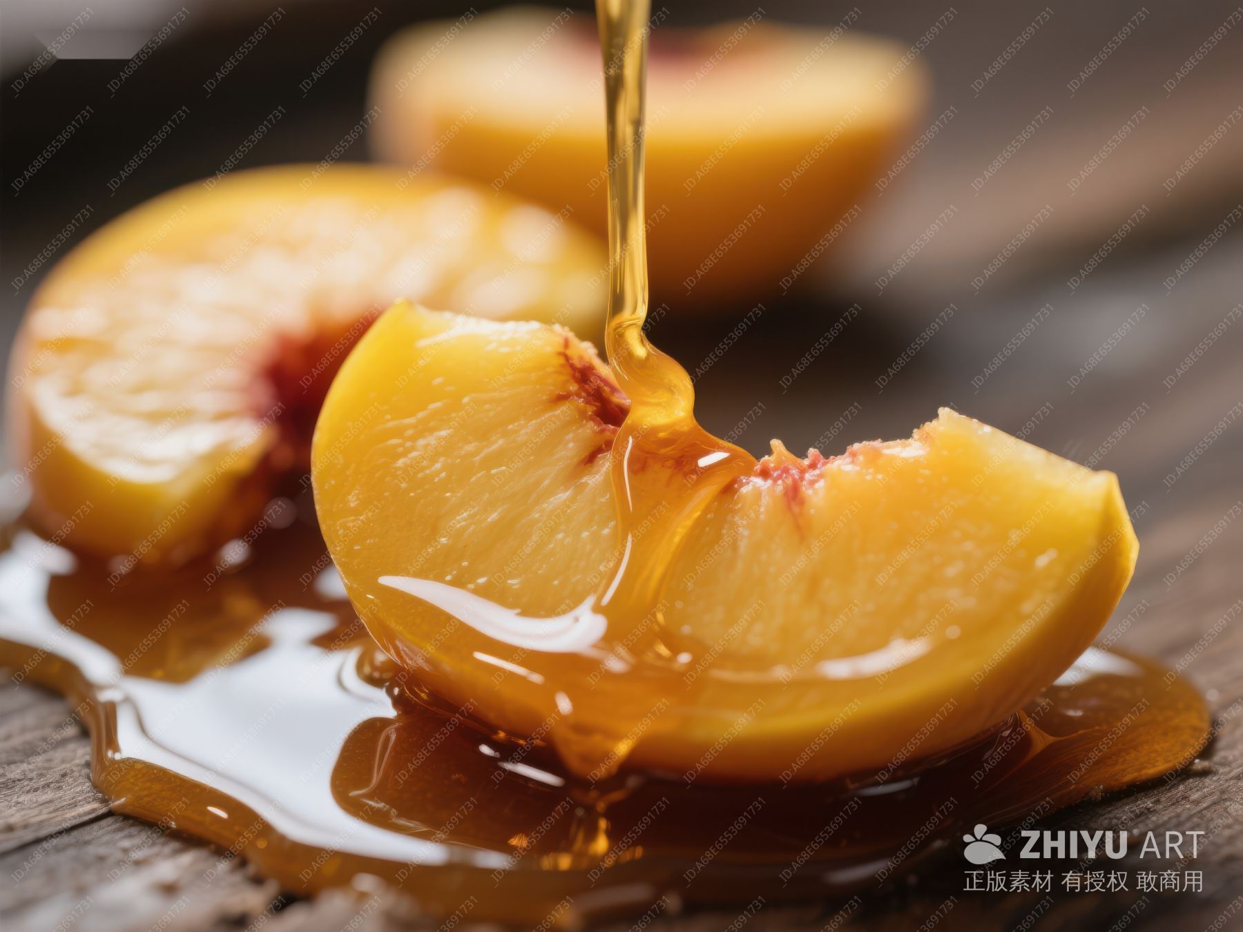 蜂蜜淋在切开的桃子上 244