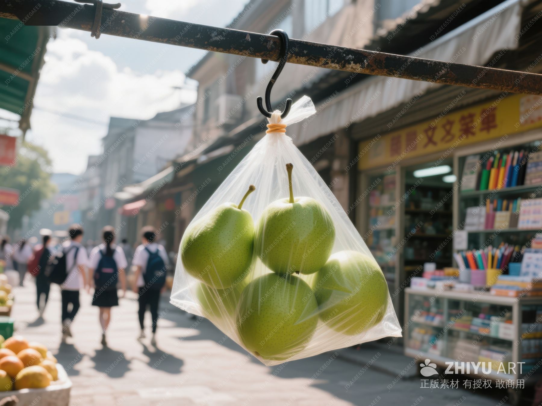 街头塑料袋装苹果与行人 312