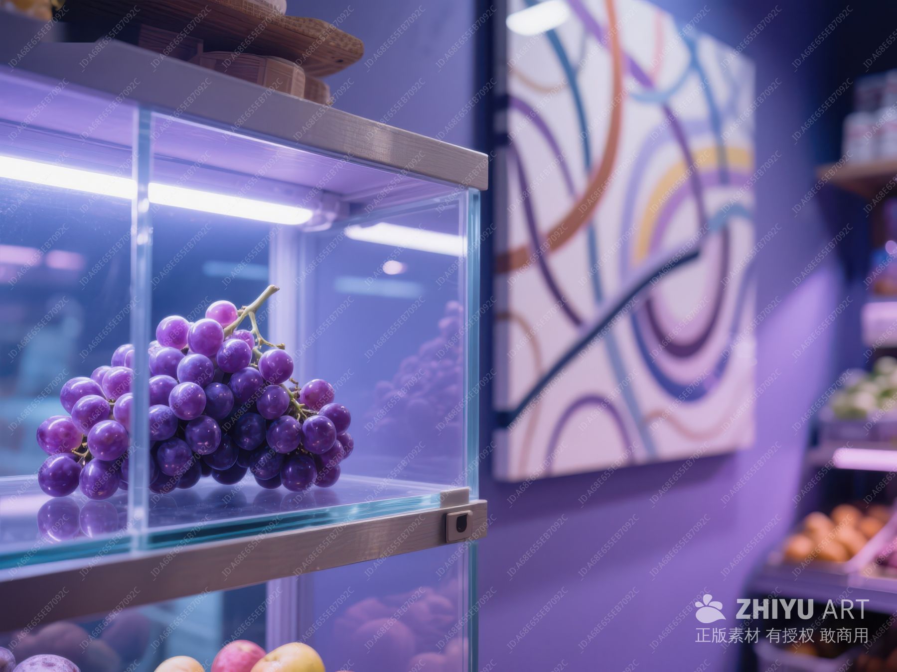 新鲜葡萄陈列于灯光装饰的水果摊 681