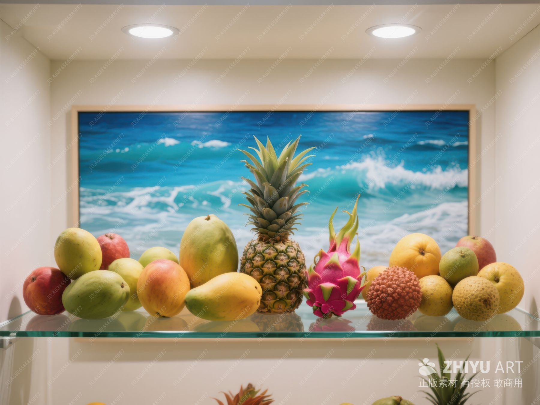 热带水果陈列与海洋画作 446