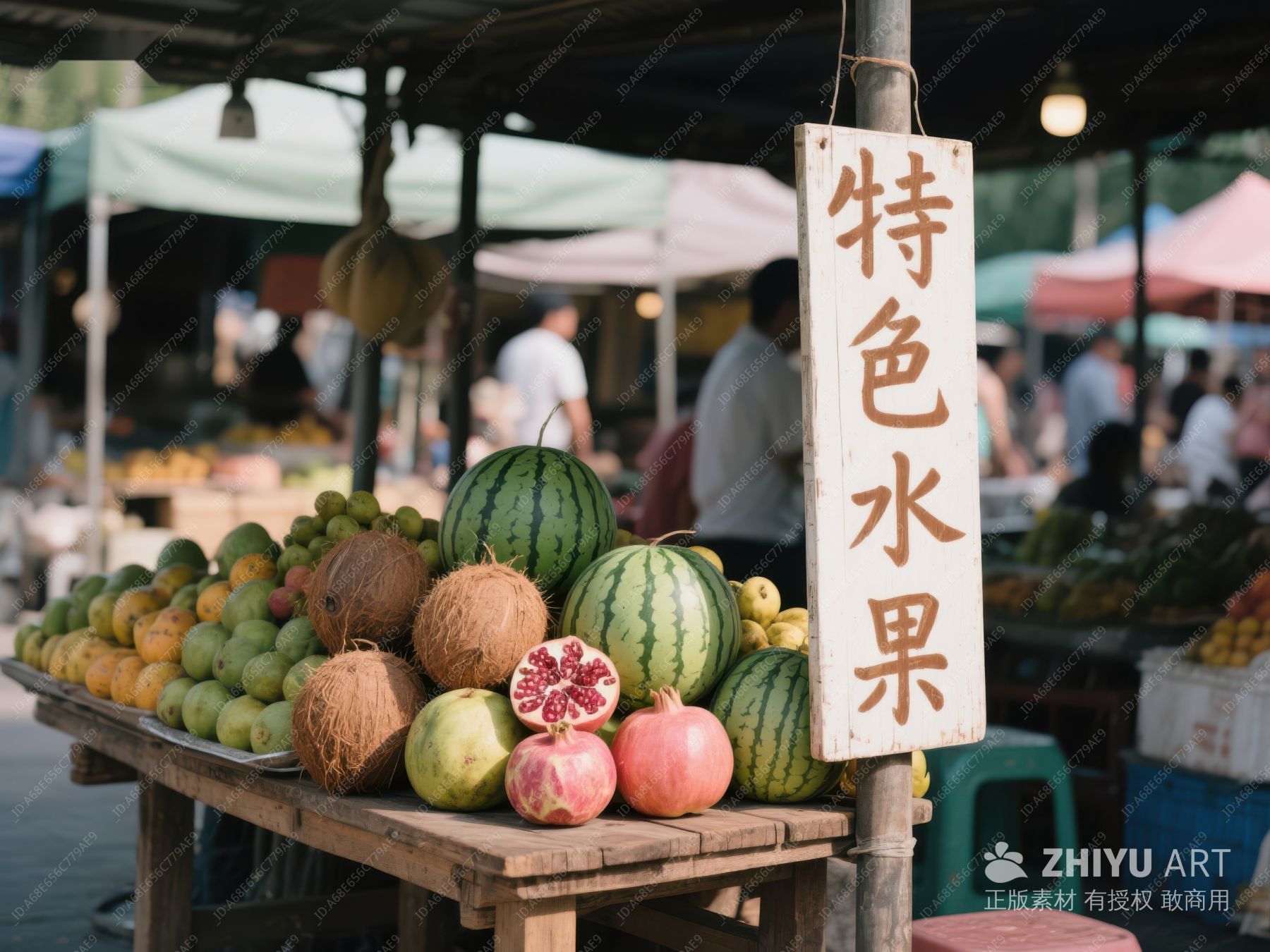 新鲜水果摊位,色彩斑斓的市场一角 642