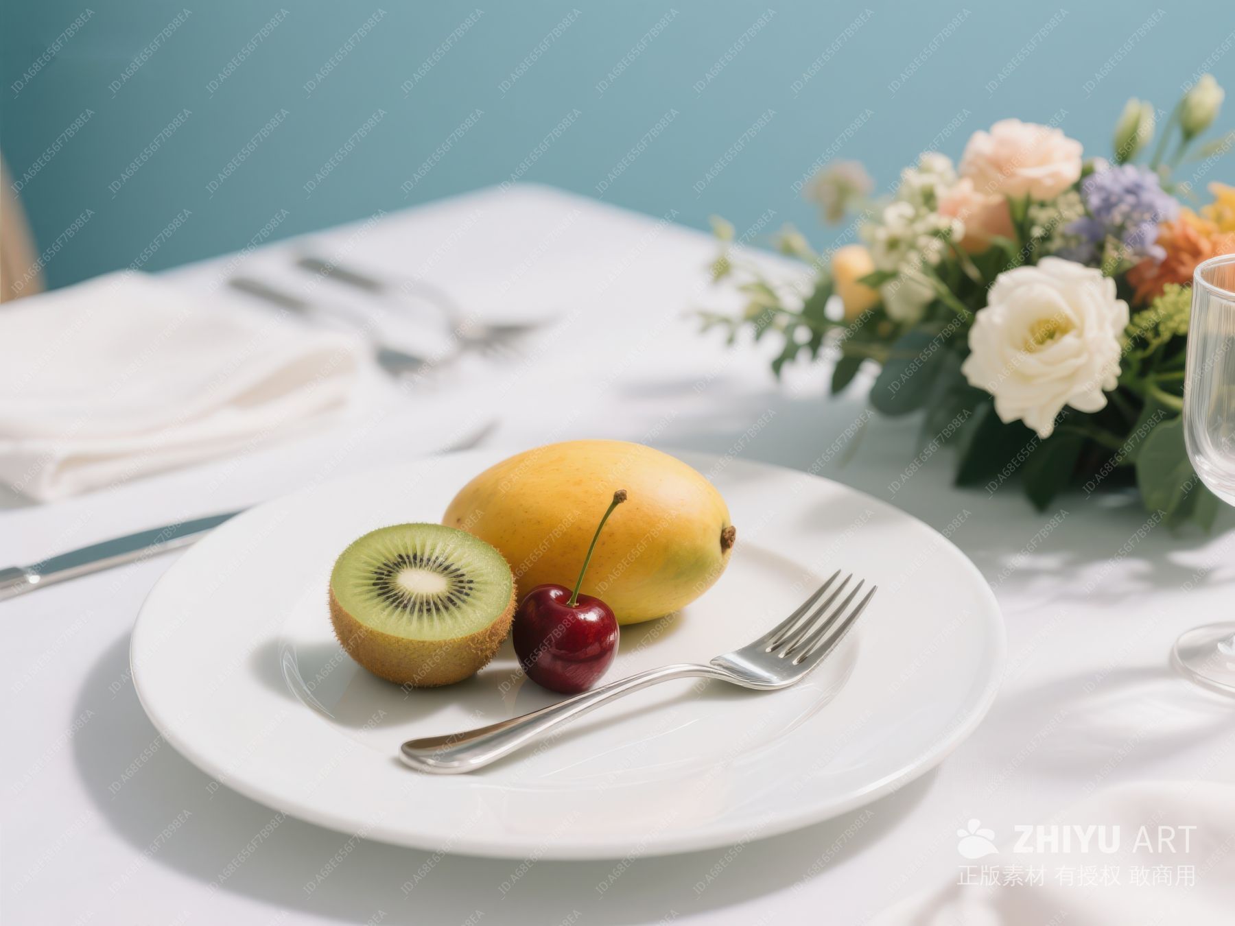 色彩缤纷的水果拼盘置于白色餐桌 463