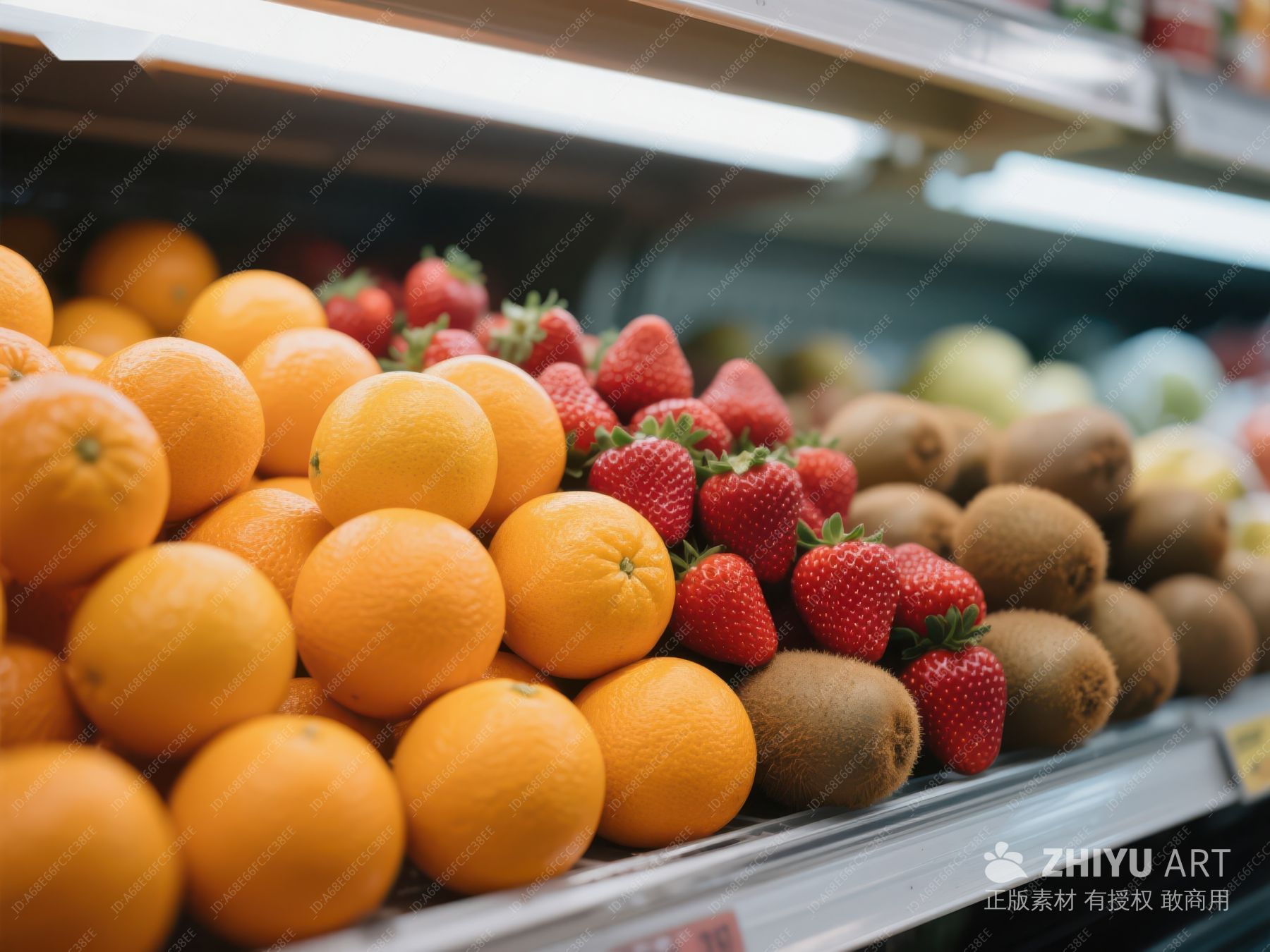 超市水果陈列:橙子、草莓与猕猴桃 111