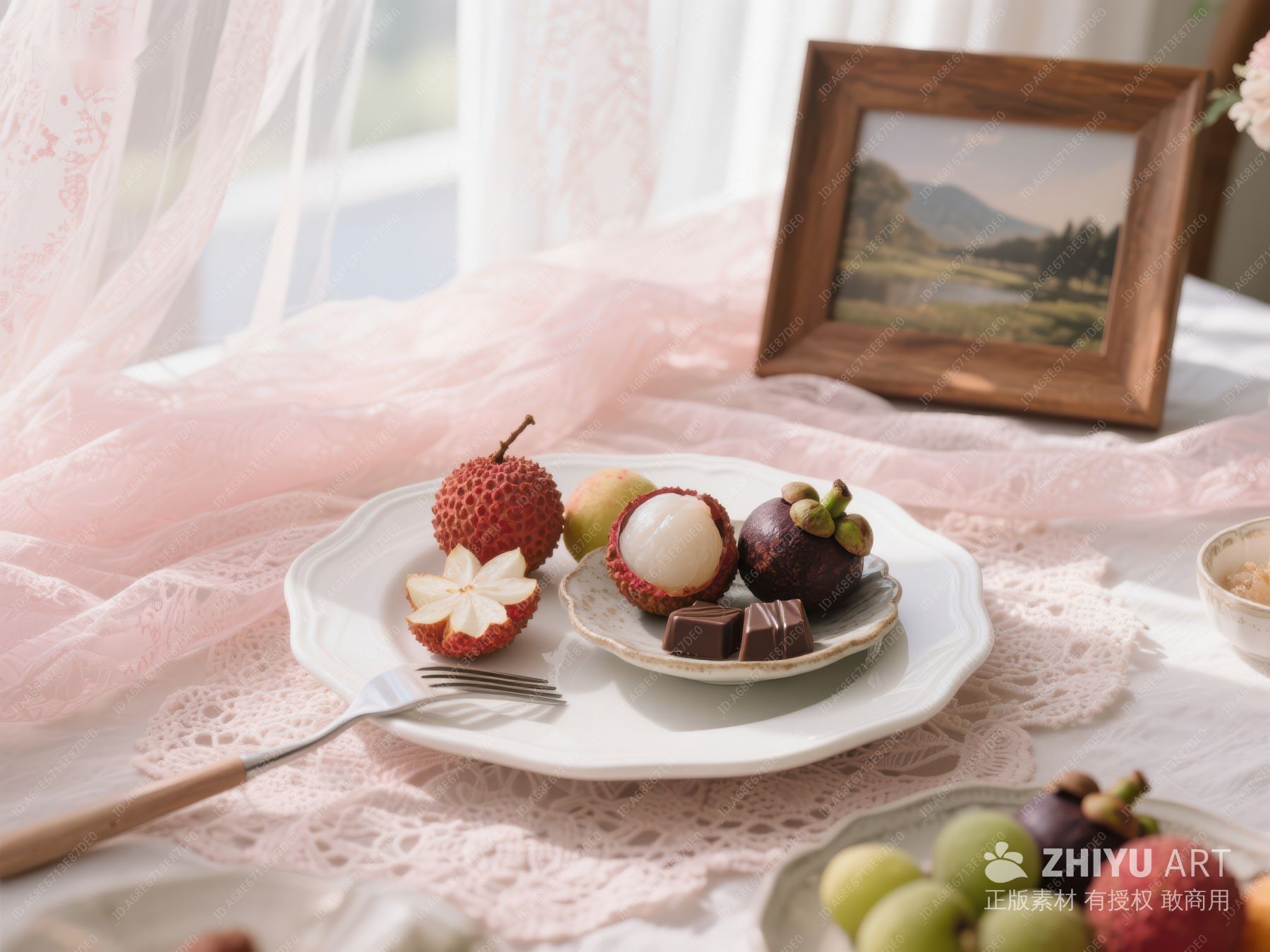 精致早餐:水果拼盘与餐具摆设 367