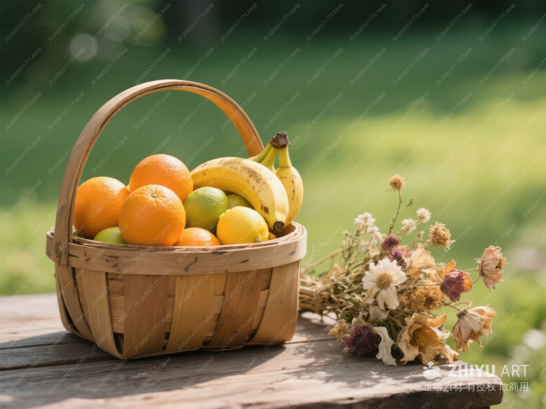 篮中水果与干花的静谧组合 387