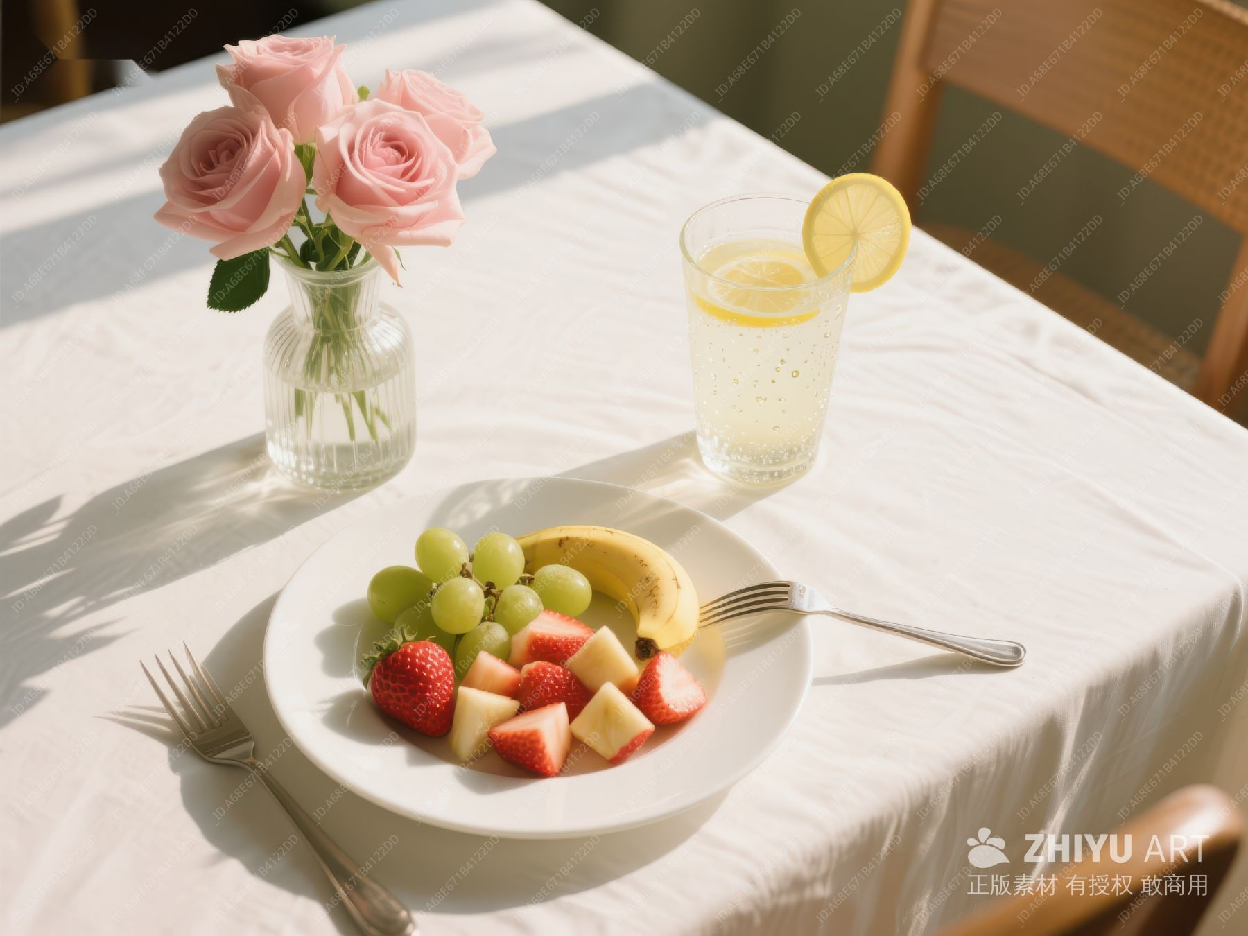 精致早餐:水果拼盘与温馨餐桌布置 298