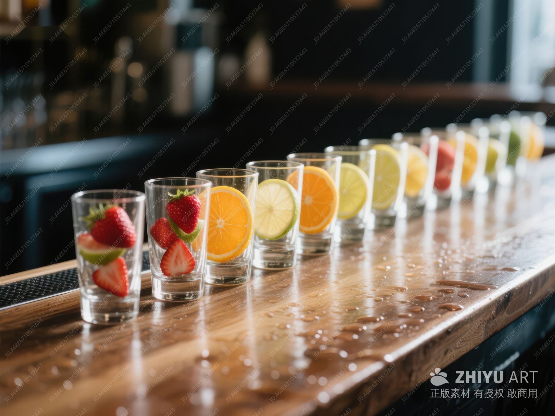 色彩缤纷的水果酒杯排列 461