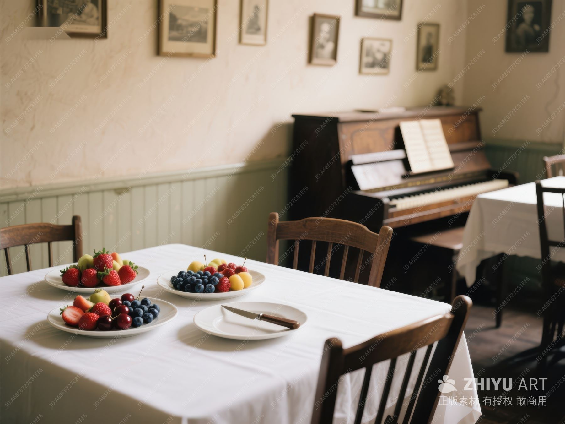 水果拼盘与粉色玫瑰的浪漫餐桌 523