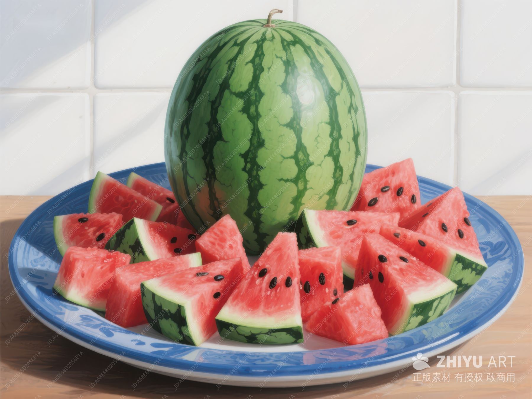 切片西瓜与整瓜的清新展示
