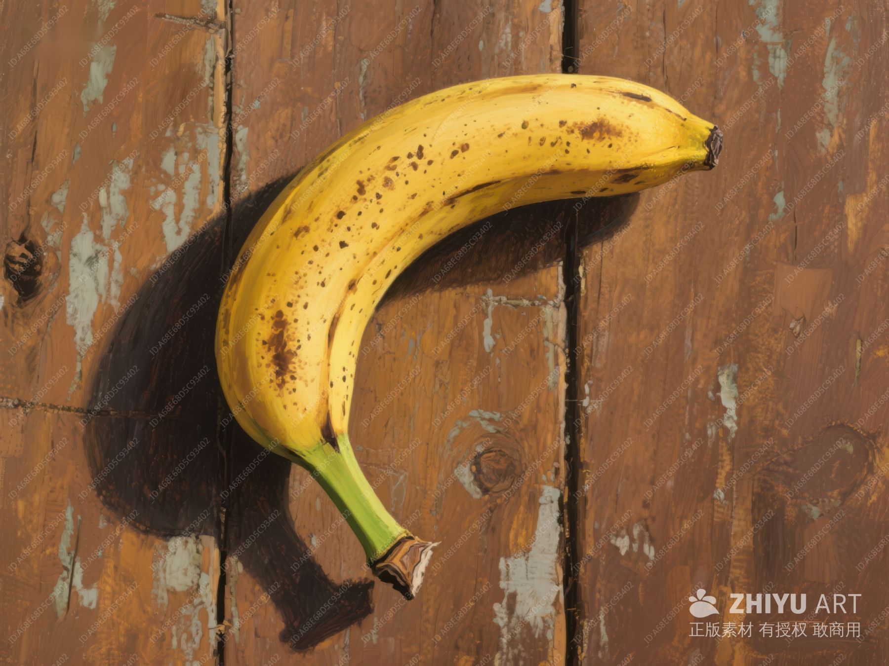 两根香蕉并排放在一张质朴的木桌上,桌上铺着一块简单