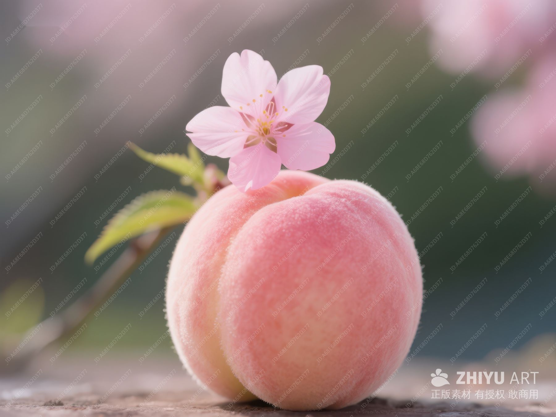 柔和光影下的桃子与花瓣 436