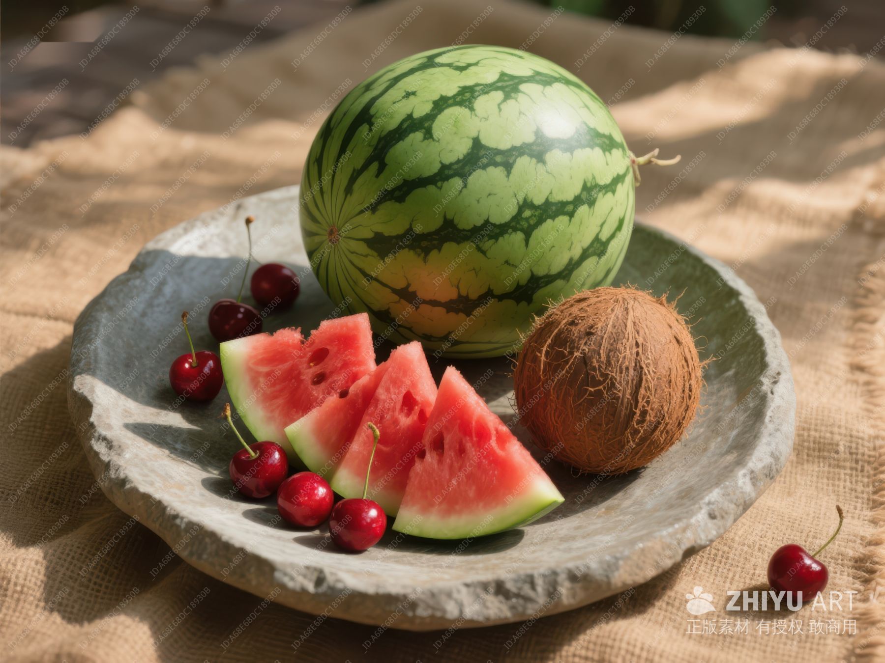 夏日水果盘:西瓜、桃子与梨的清新组合 635