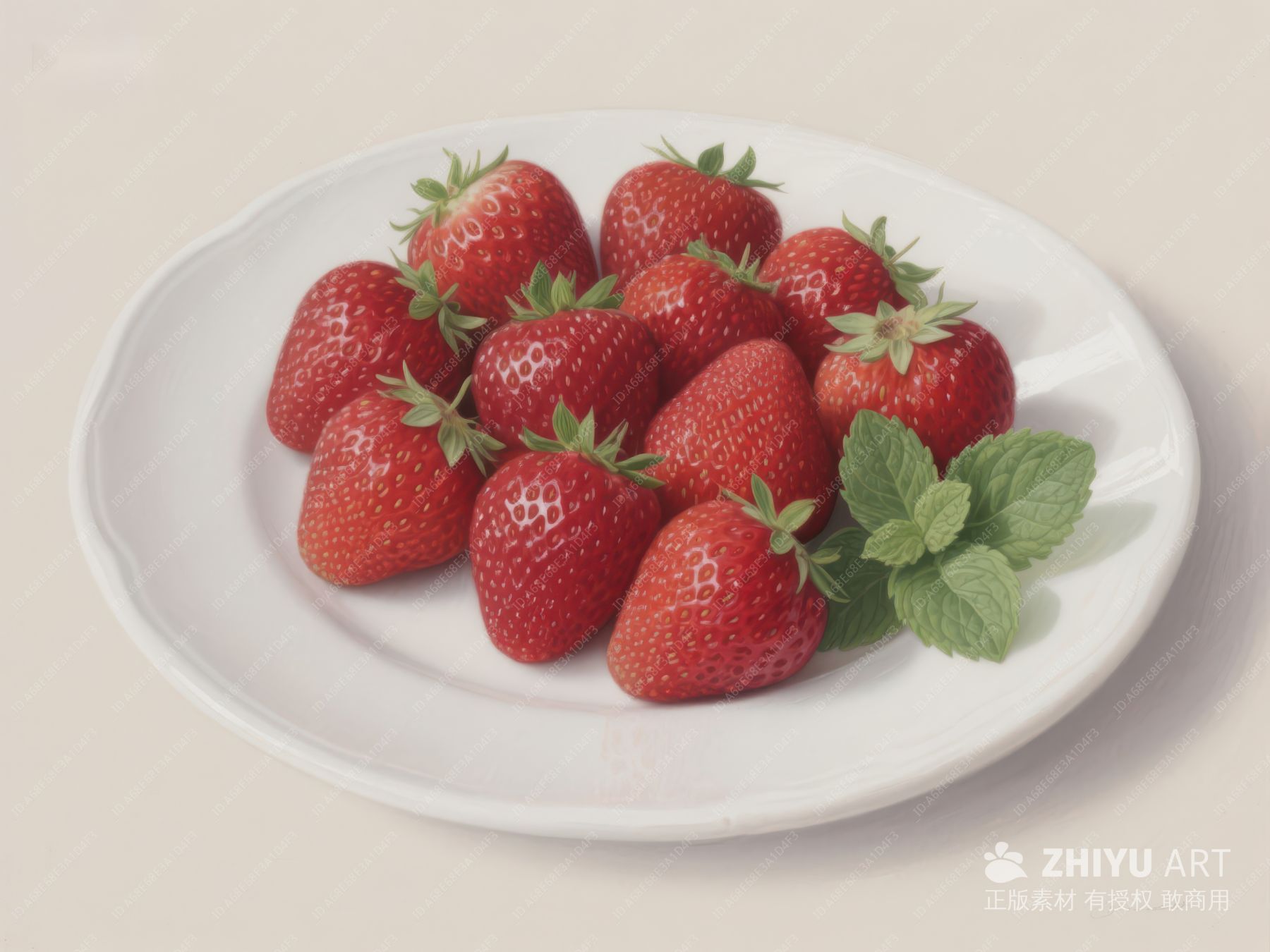 新鲜草莓与薄荷叶的清新组合 538