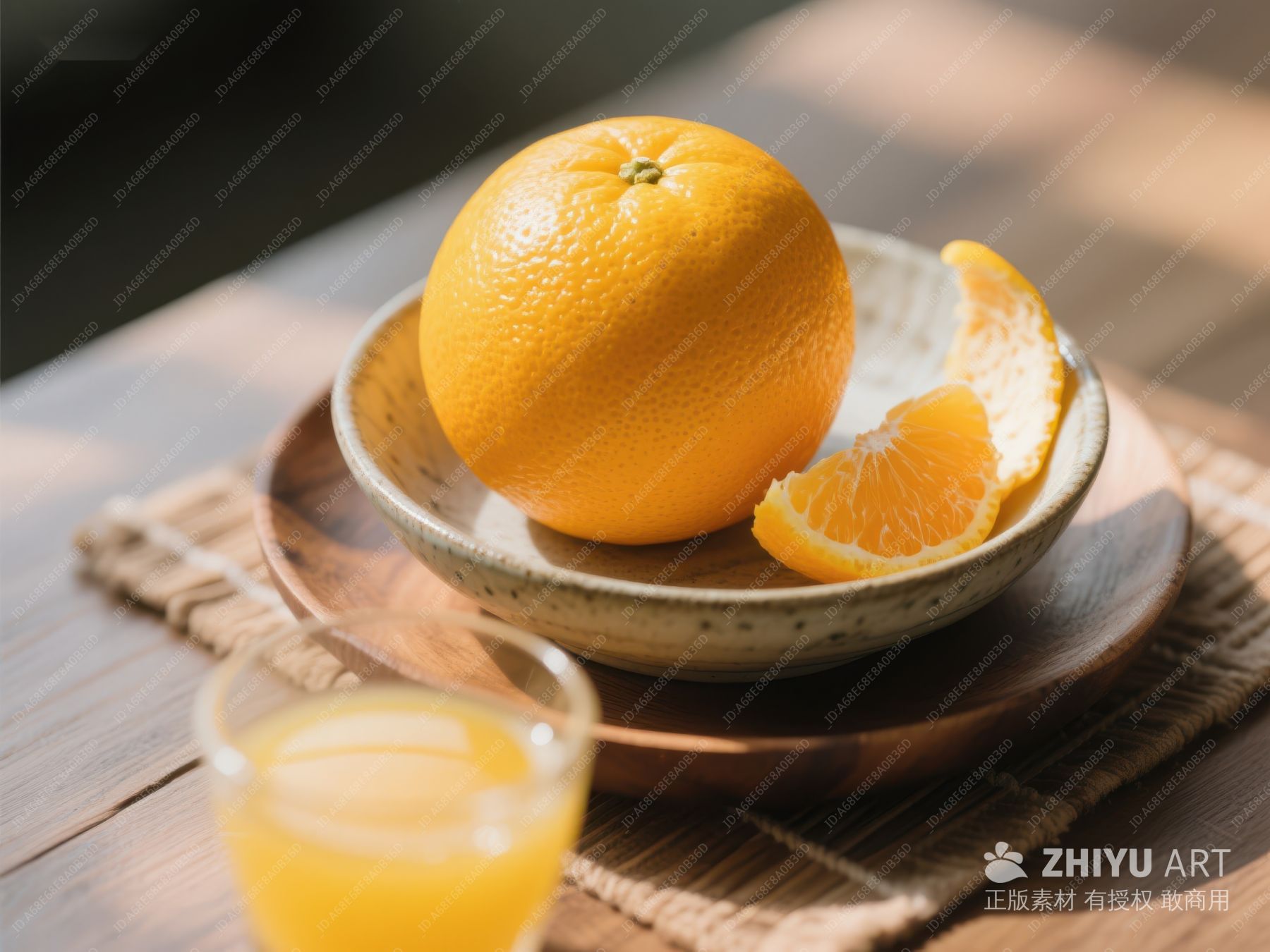 新鲜橙子与橙汁的静谧组合 653
