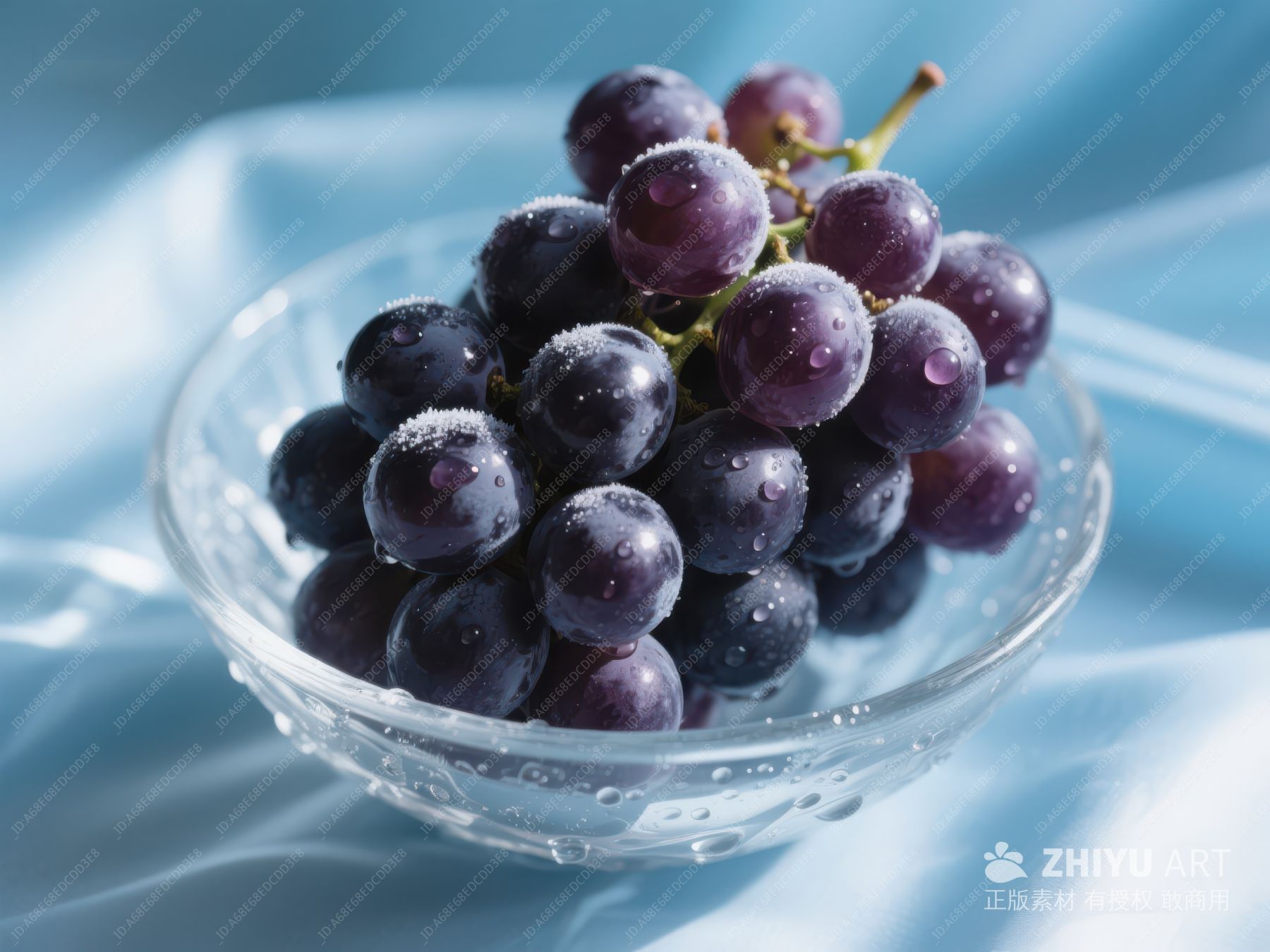 紫葡萄盛于透明碗中 819