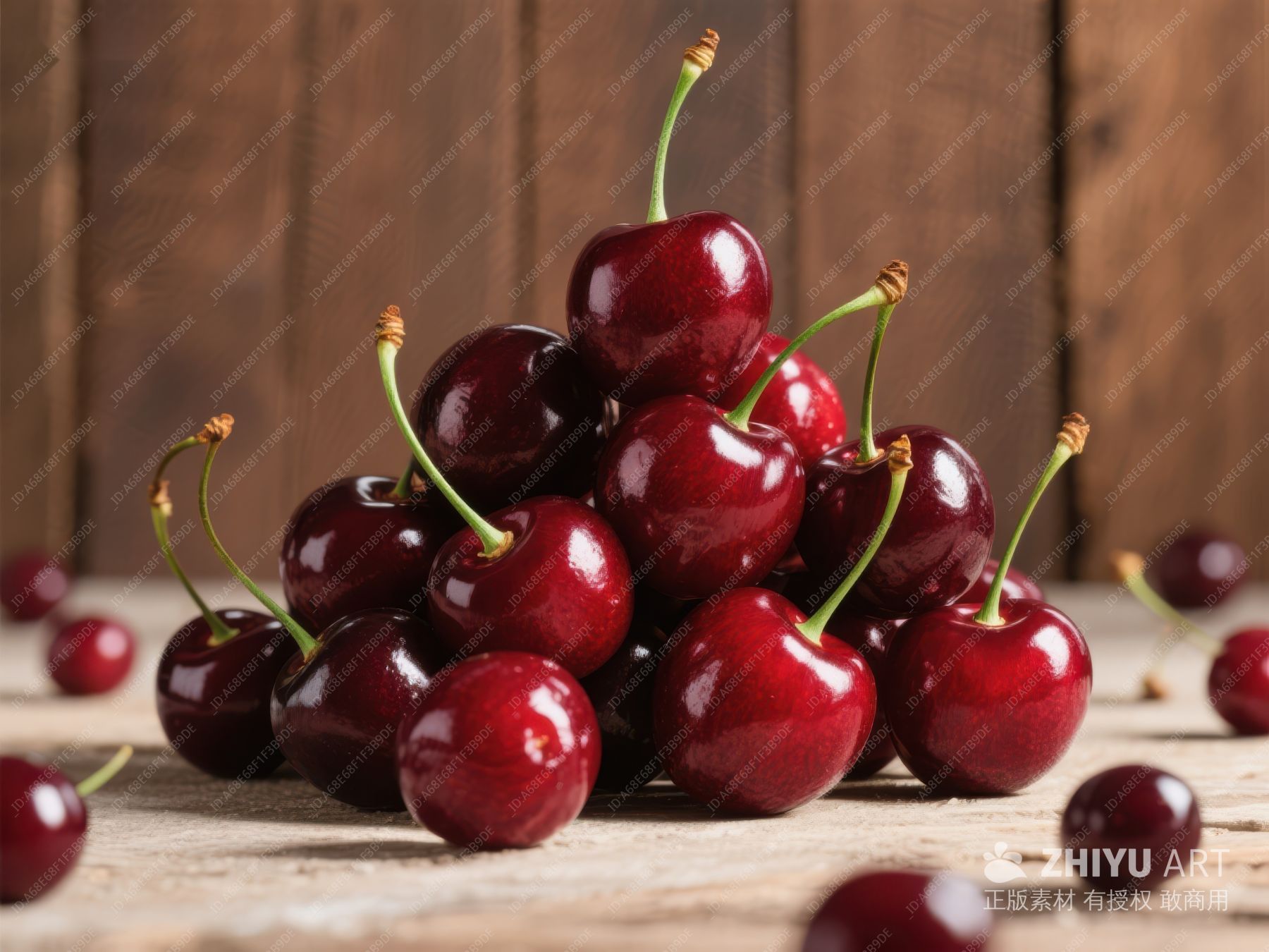 新鲜樱桃堆叠在木质背景上 751