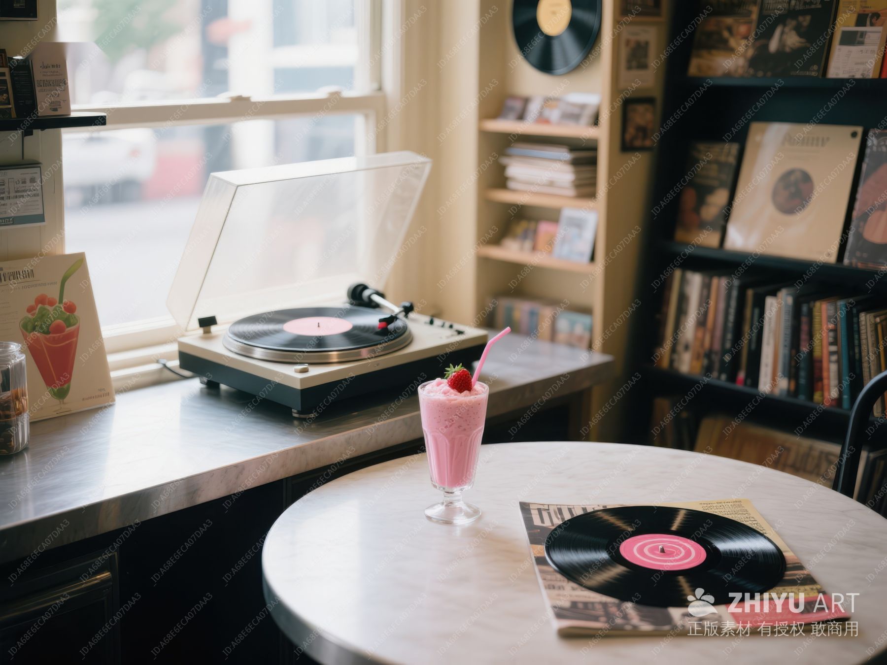 黑胶唱片与粉色奶昔的复古角落 168