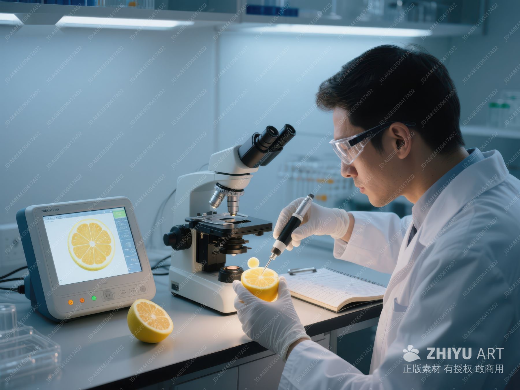 科学家在实验室用显微镜观察柠檬切片 242