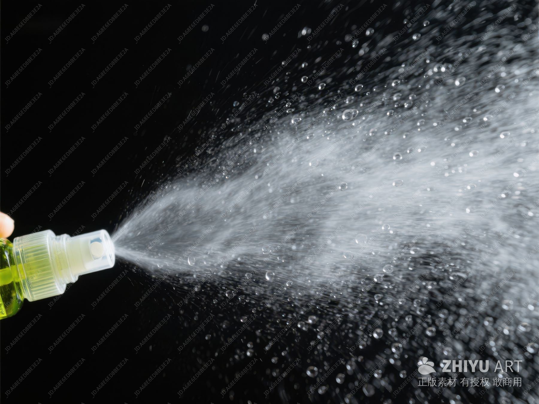 喷雾瓶喷洒液体,背景为黑色 321