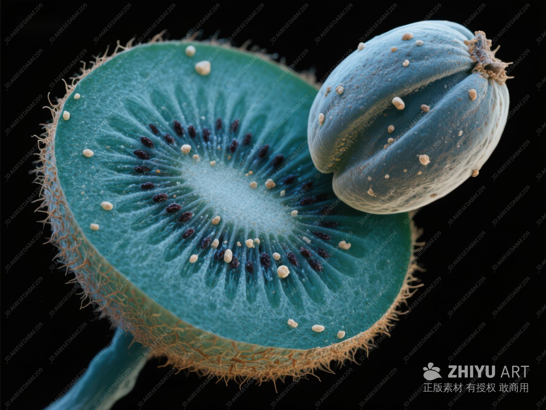切开的猕猴桃,展示绿色果肉和黑色种子 367