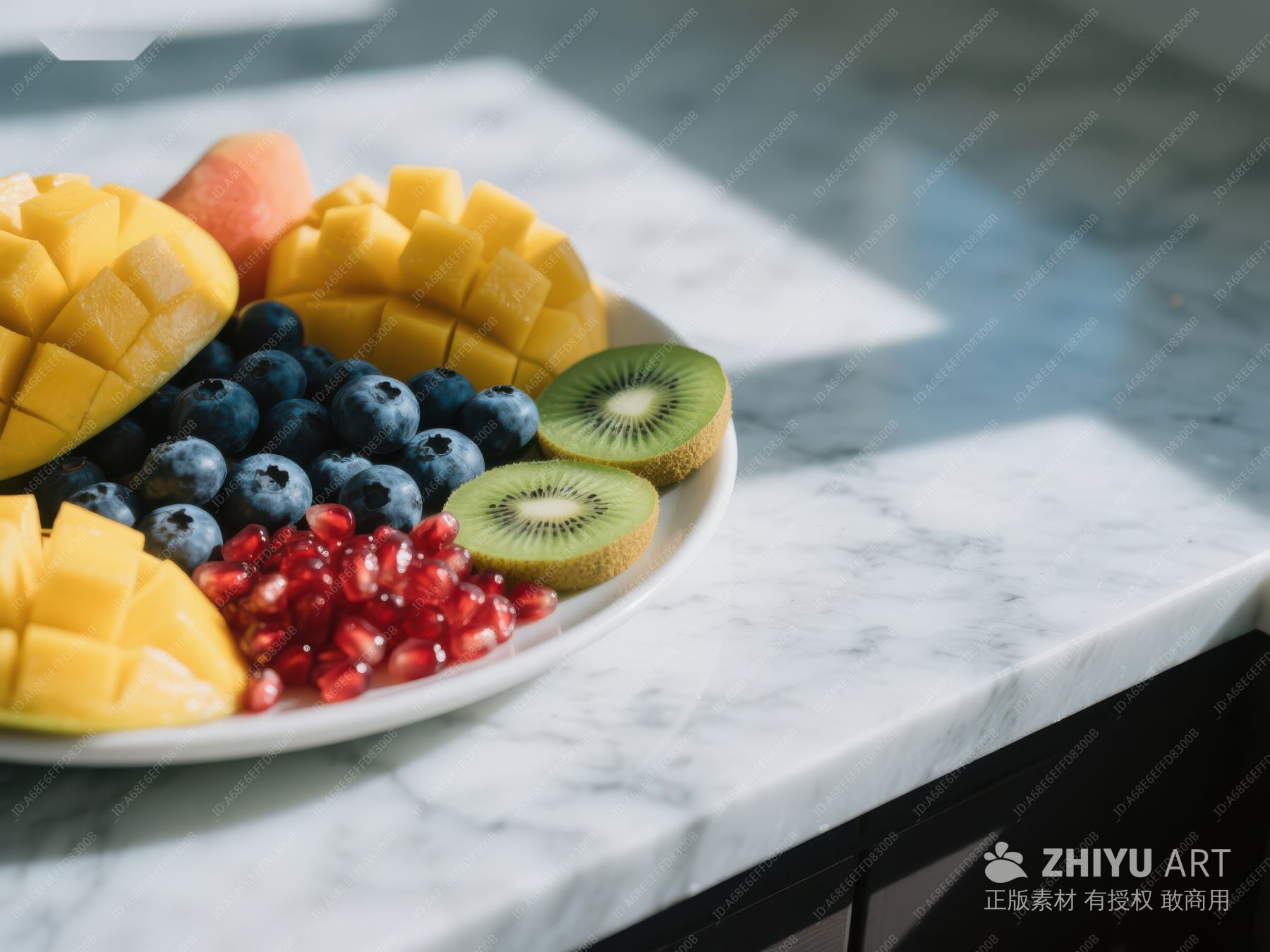 新鲜水果拼盘置于大理石桌面上 704